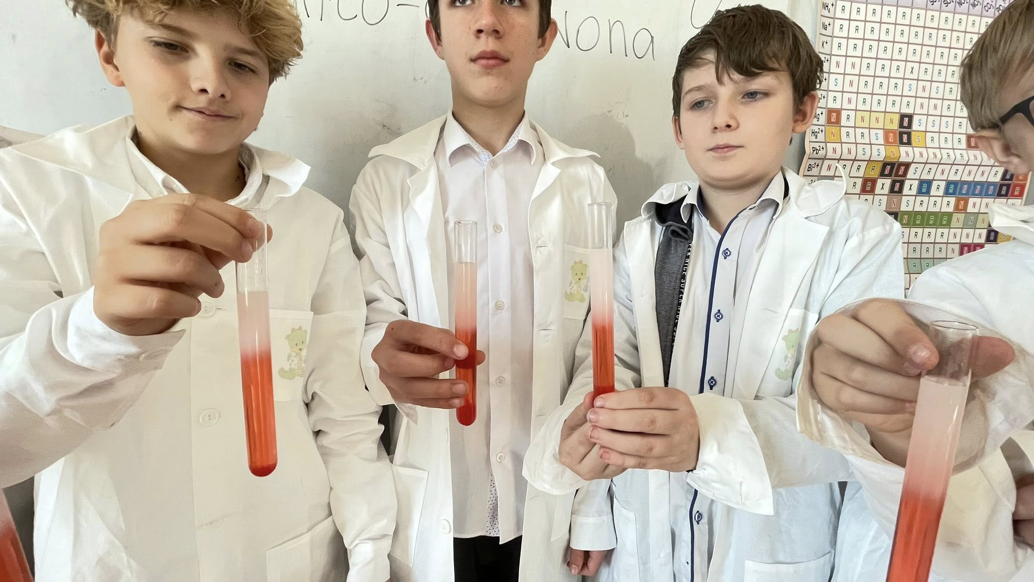 Uczniowie klasy 6 z kółka chemicznego połączyli naukę z patriotyzmem i przygotowali niezwykły eksperyment – flagę biało-czerwoną stworzoną z chemicznych roztworów! ![]()