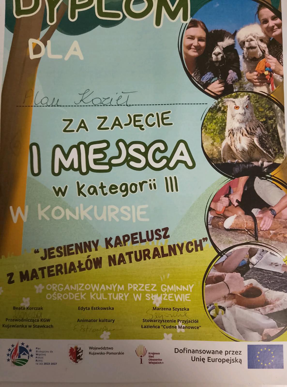 Z radością informujemy, że w Gminnym Konkursie „Jesienny kapelusz z materiałów naturalnych” organizowanym przez GOK w Służewie: