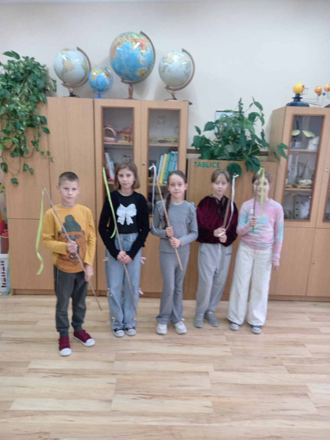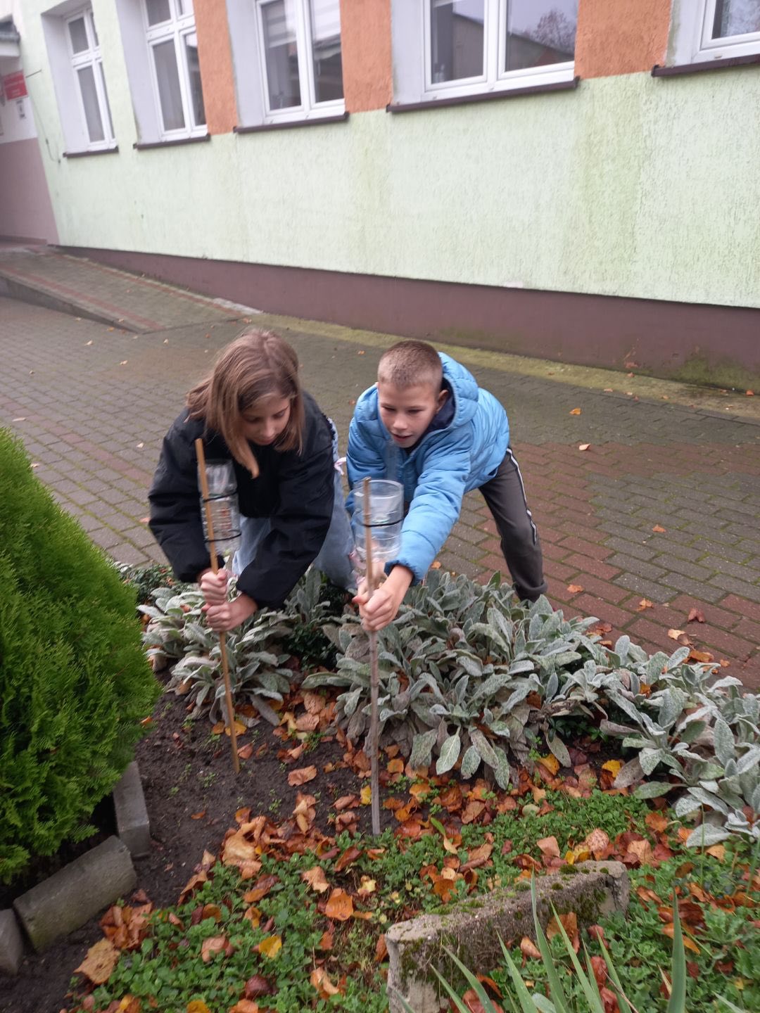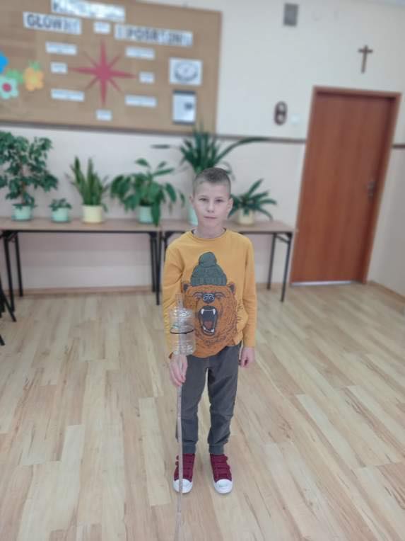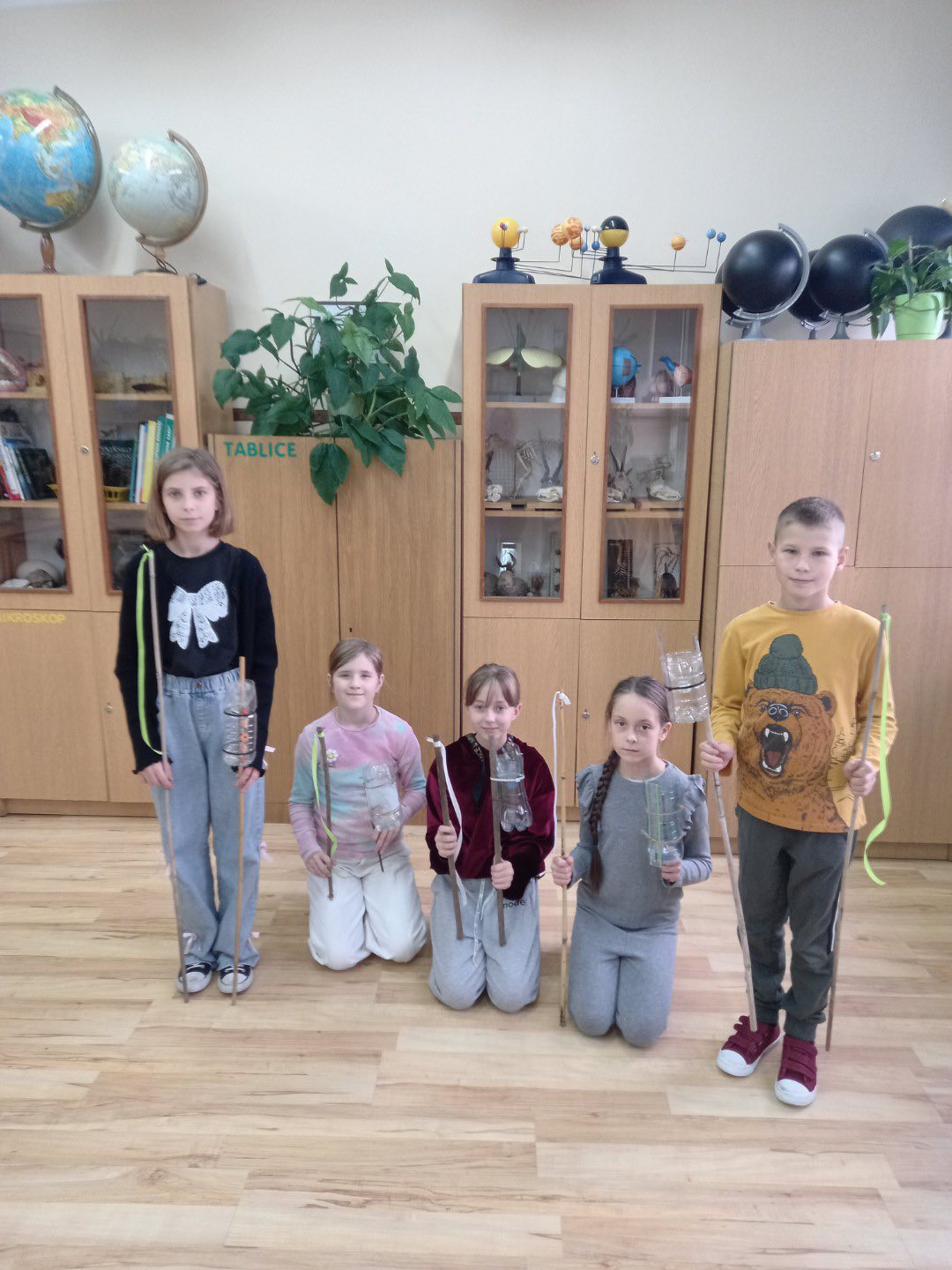 Uczniowie klasy IV na zajęciach koła przyrodniczego wykonali deszczomierze – przyrządy do pomiaru wielkości opadów oraz wiatromierze – przyrządy badające![]()