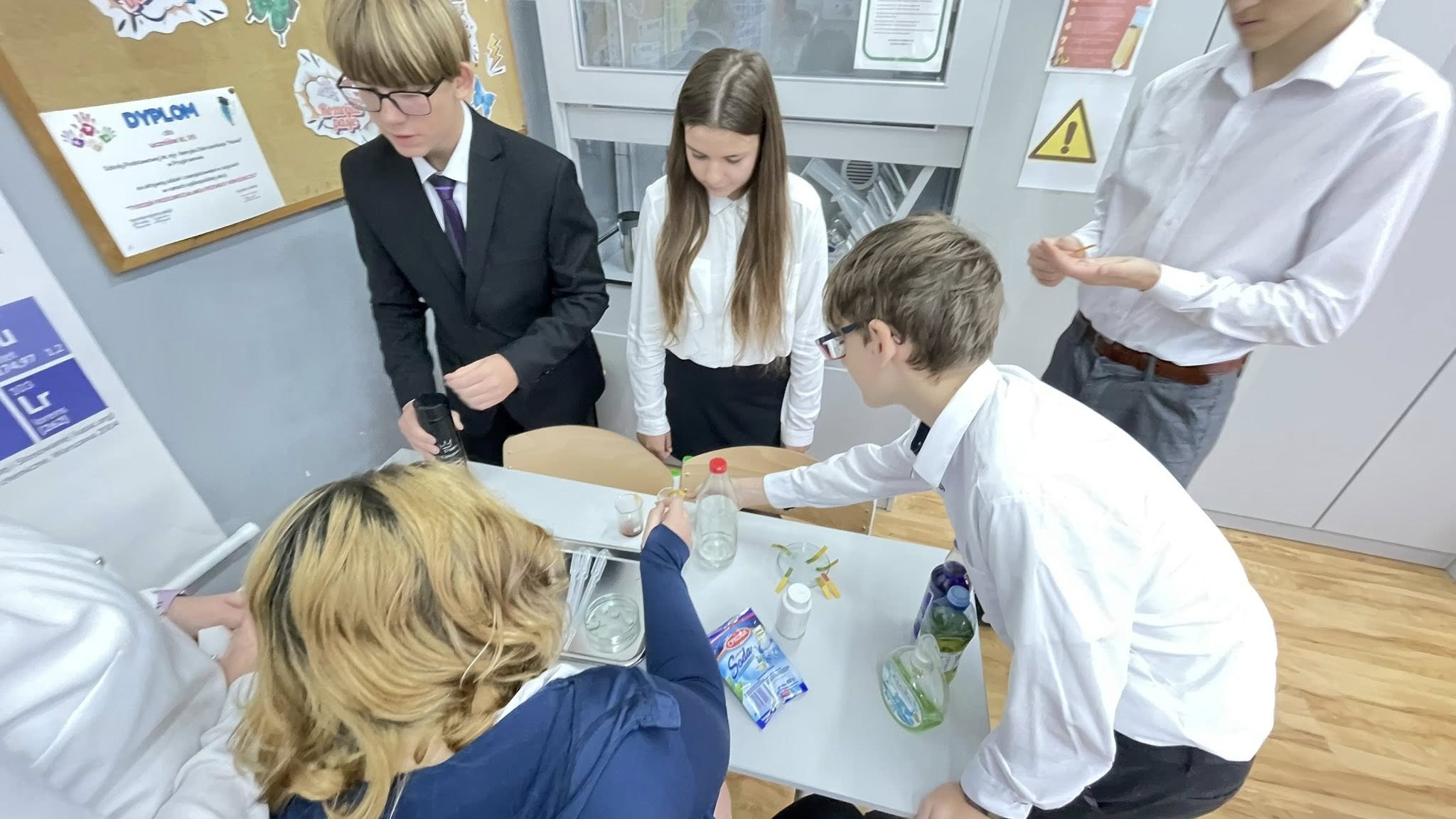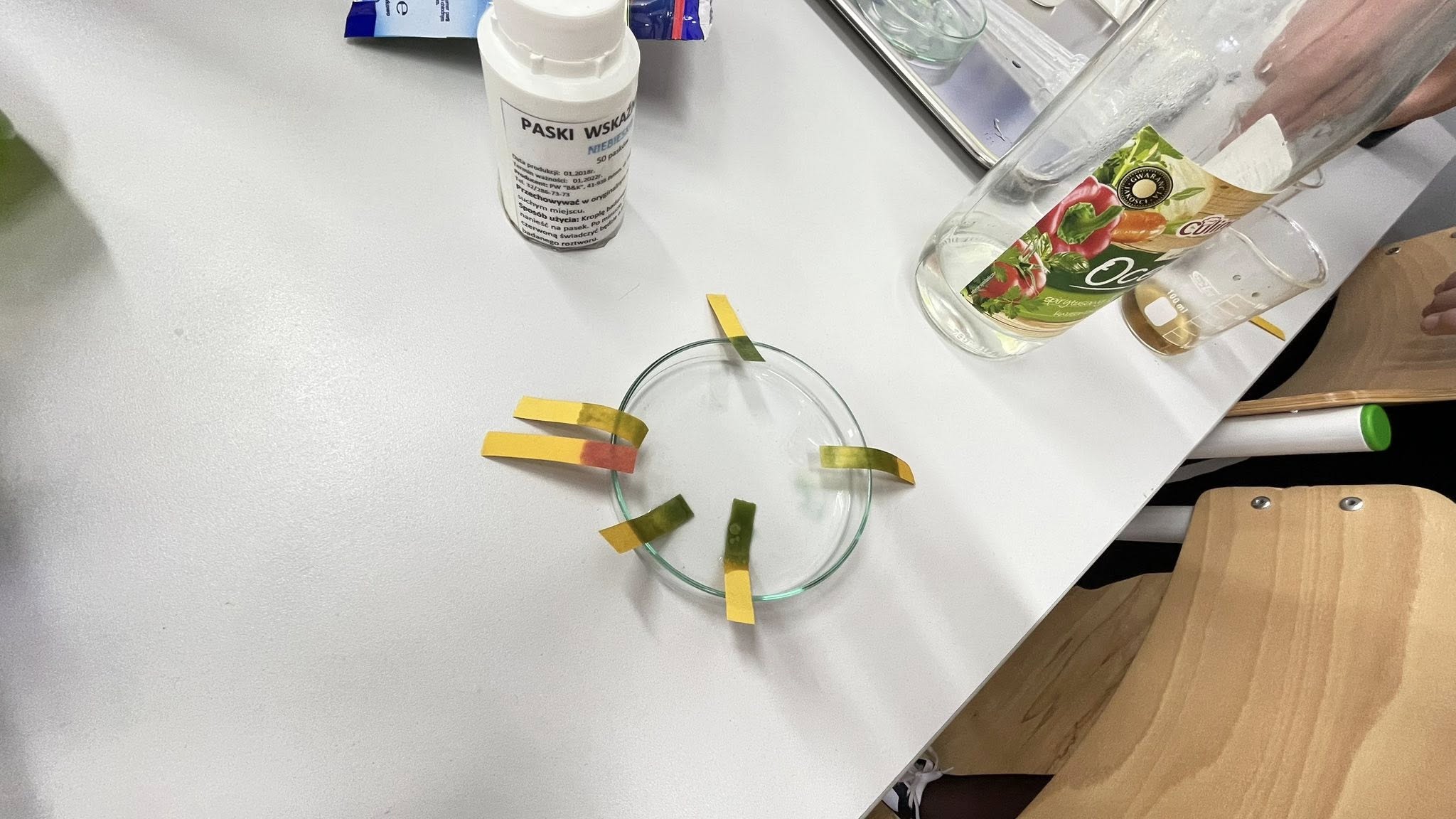 Klasa 8 odkrywała dziś tajemnice skali pH – czyli jak odróżnić to, co „gryzie jak cytryna