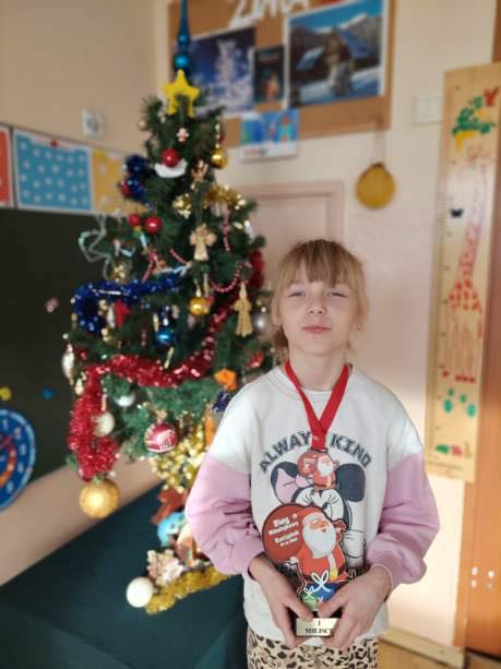 Natalia Skibińska uczennica klasy trzeciej 7 XII 2025r. zdobyła I miejsce w Biegu Mikołajkowym w Raciążku. Gratulujemy!