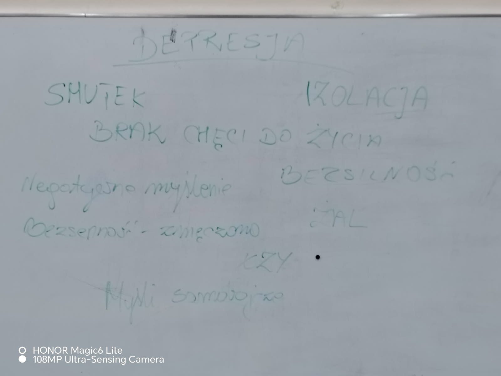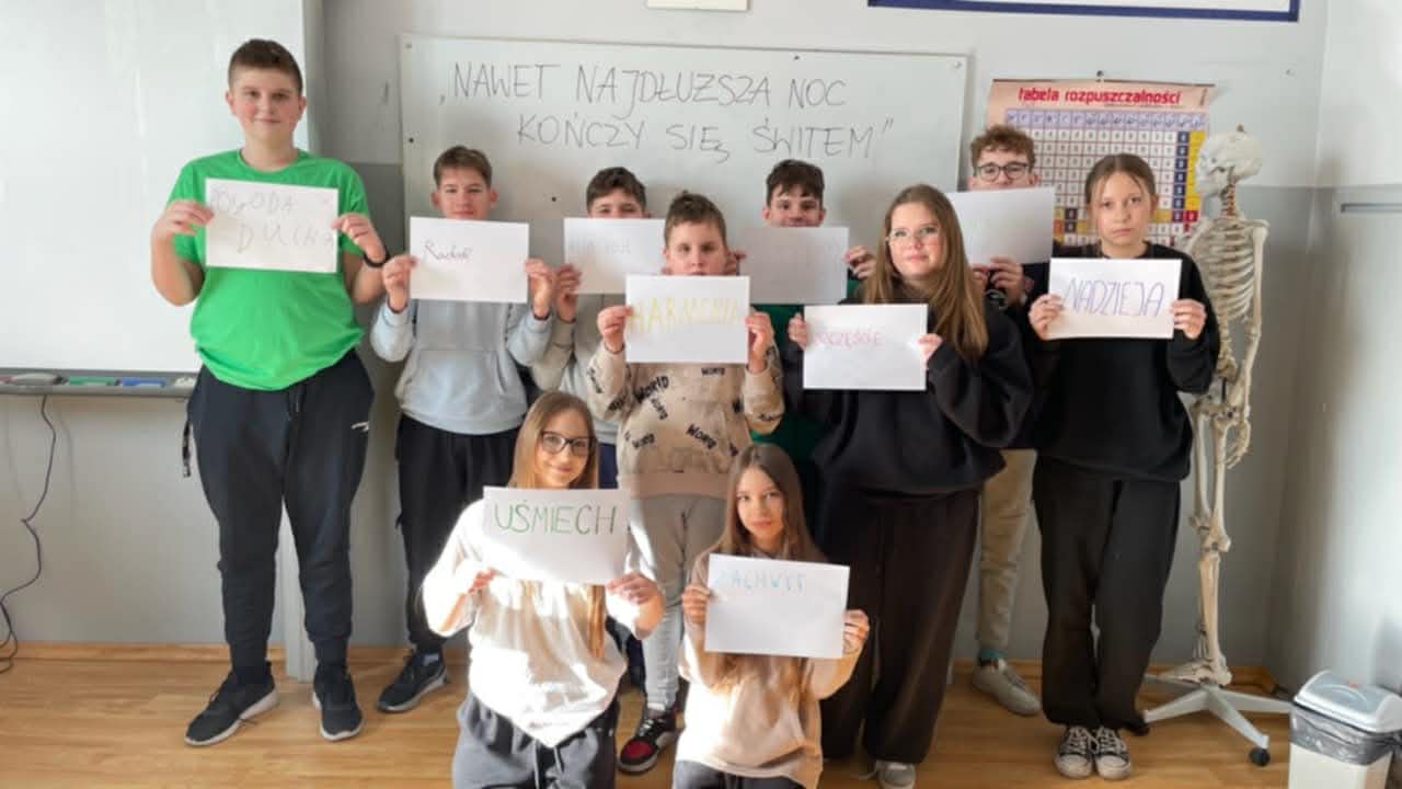 W naszej szkole z okazji Ogólnopolskiego Dnia Walki z Depresją wychowawcy i specjaliści przeprowadzili zajęcia z uczniami na temat depresji i jej objawów, co może wywołać tę chorobę, jakie są mity i stereotypy oraz w jaki sposób reagować, gdy zauważymy, że ktoś potrzebuje pomocy. Omówiono także sposoby radzenia sobie ze stresem. Przypomniano dzieciom i młodzieży, gdzie i do kogo mogą zwrócić się o pomoc będąc w sytuacji trudnej, kryzysowej. Zaprezentowano plansze m.in. z numerem Telefonu Zaufania dla Dzieci i Młodzieży. Uczniowie wykonali również prace plastyczne nawiązujące do omawianego tematu depresji. Na korytarzu szkolnym wyeksponowano także gazetkę tematyczną. Celem tych działań było zwiększenie wśród uczniów świadomości problemu zdrowia psychicznego, budowanie wrażliwości, życzliwości oraz umiejętności dostrzegania sygnałów ostrzegawczych u siebie i innych, a co najważniejsze – właściwego reagowania.