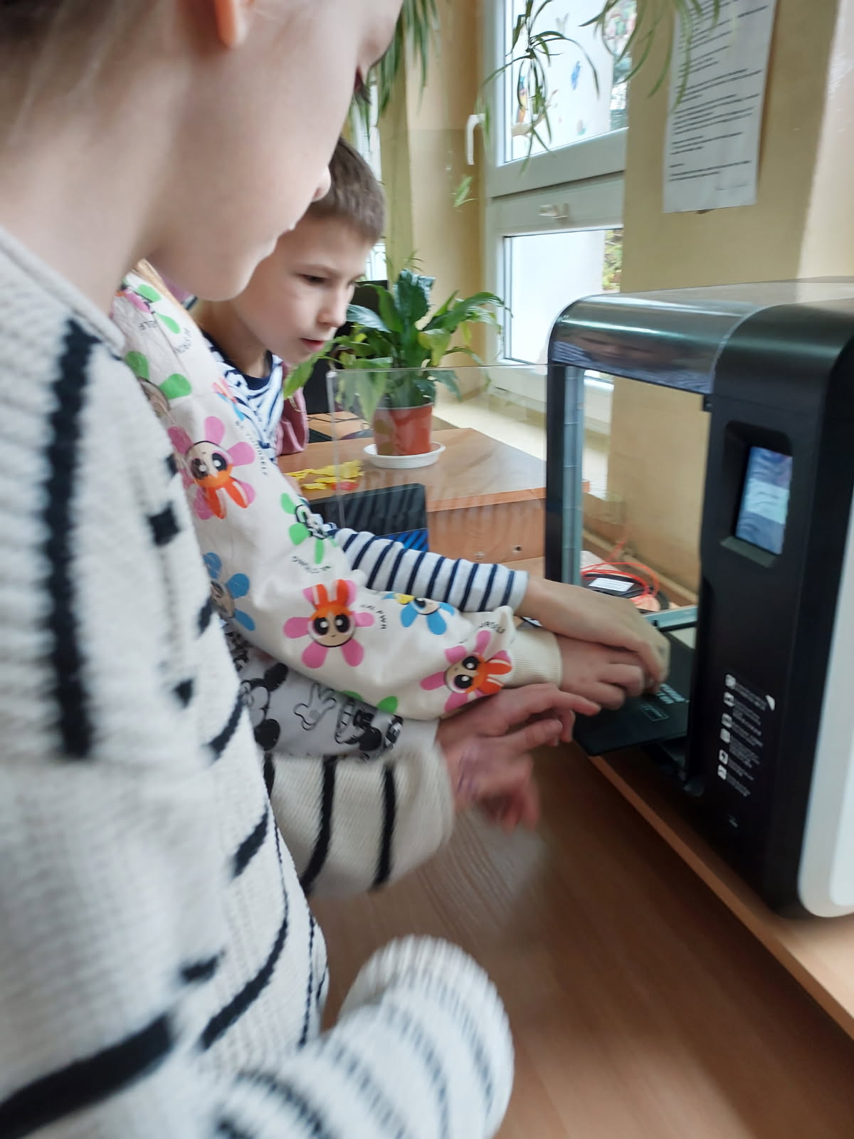 17.11.2025 r. na lekcjach informatyki uczniowie klas IV - VIII dowiedzieli się, czym jest drukarka 3D, starali się odkryć najważniejsze jej elementy, a na podstawie obserwacji próbowali wyjaśnić ich działanie. Podczas zajęć uczniowie wraz z nauczycielem tworzyli pierwsze projekty , m.in. breloczek do kluczy w kształcie gwiazdki. Zajęcia odbyły się w ramach realizacji programu edukacyjno- technologicznego Laboratoria Przyszłości.