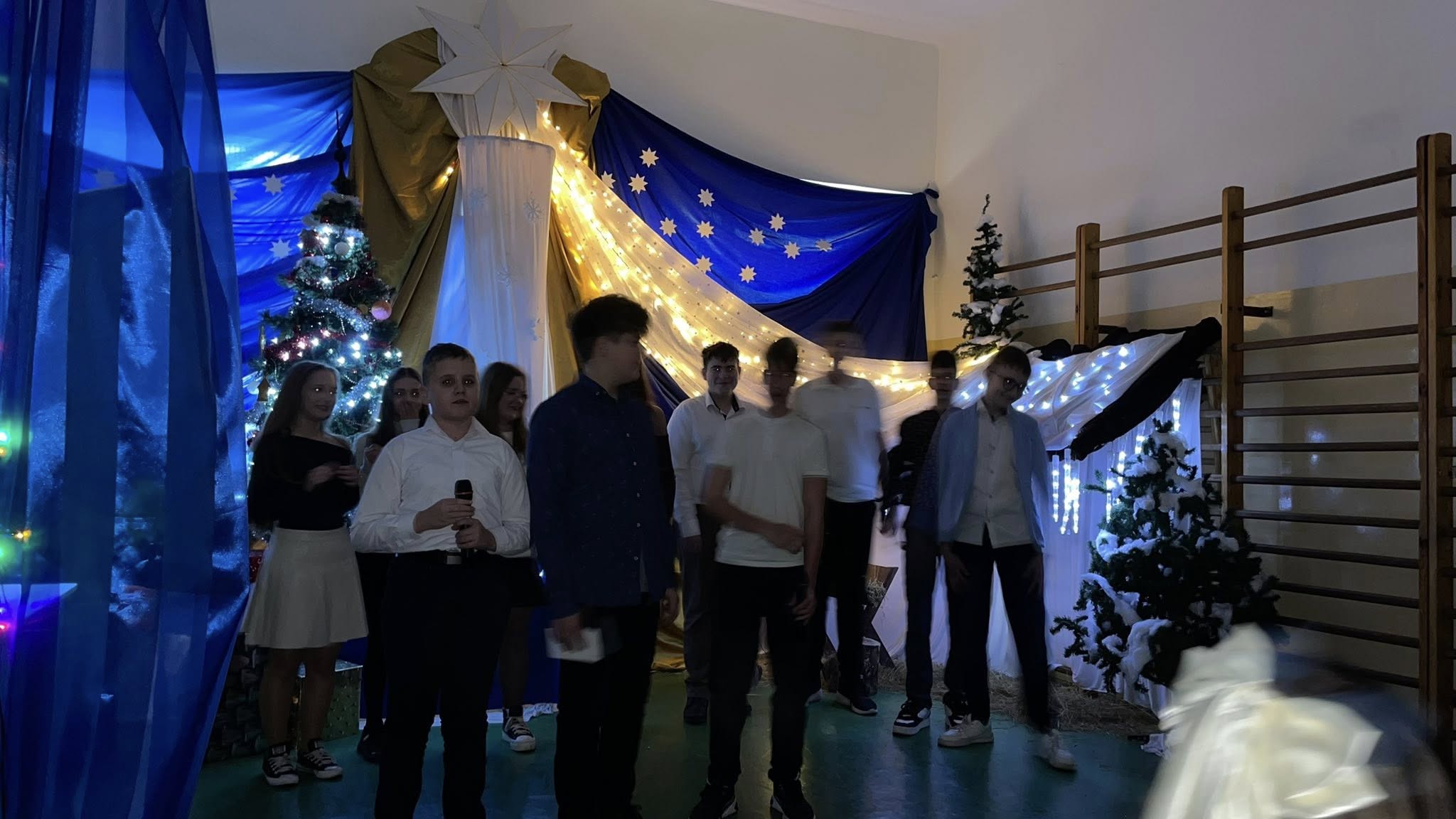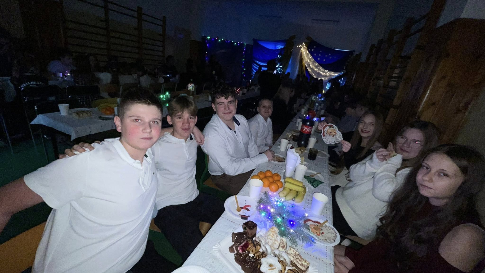 Dzisiejszy dzień na długo pozostanie w naszej pamięci. Cała społeczność szkolna spotkała się na wspólnej wigilii szkolnej na sali gimnastycznej, która na ten czas zamieniła się w miejsce pełne ciepła, radości i świątecznej magii.