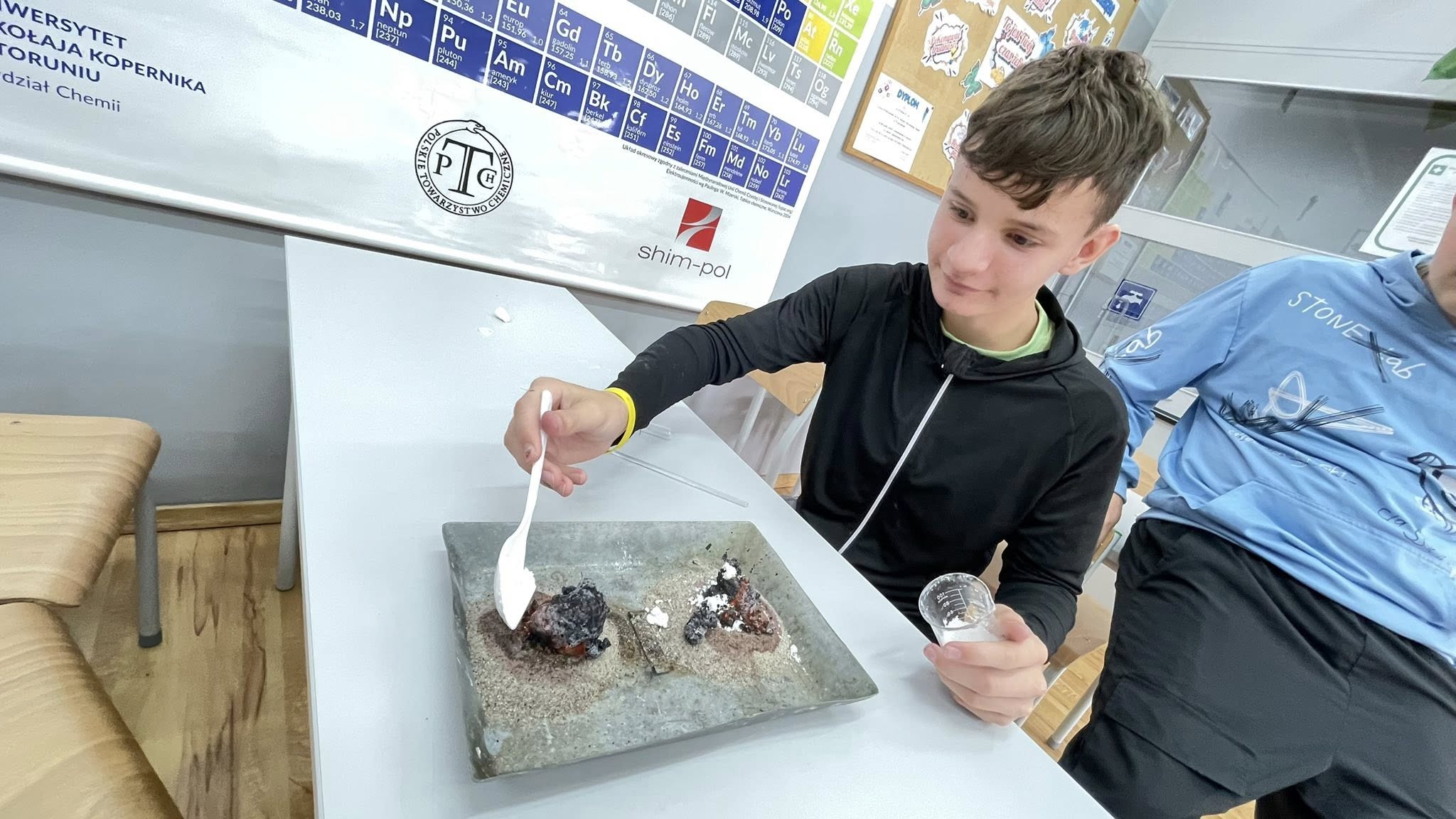 Na kółku chemicznym rzucili zaklęcie na cukier i sodę, przywołując z płomieni... legendarnego Węża Faraona! Podobno nie gryzie, ale sprzątać po nim trzeba.