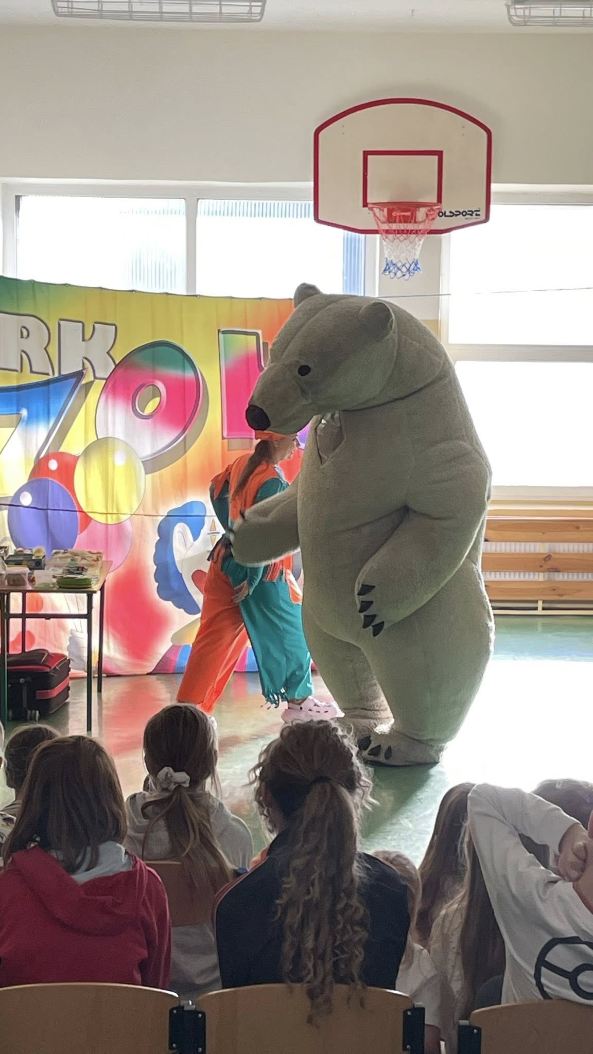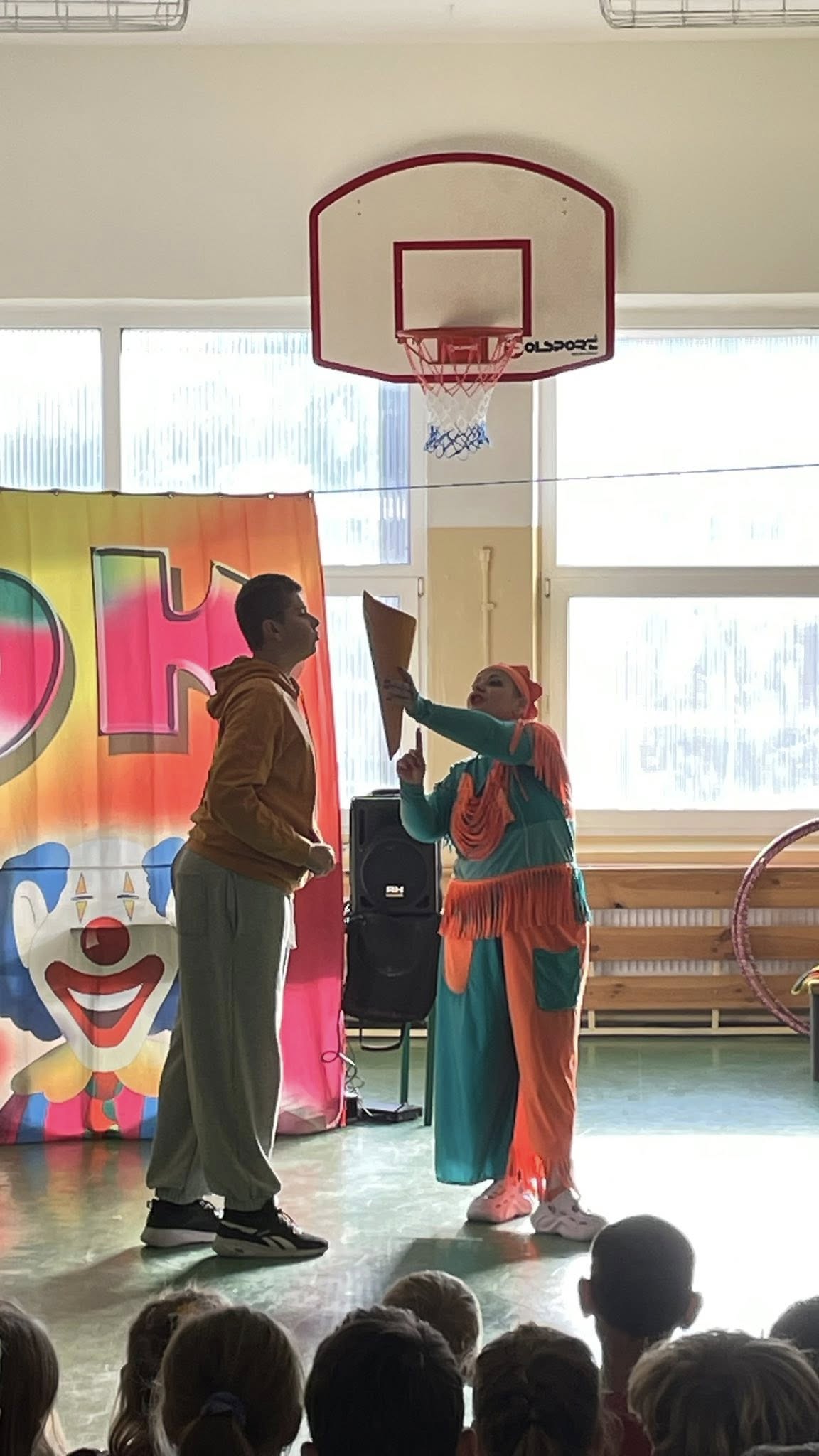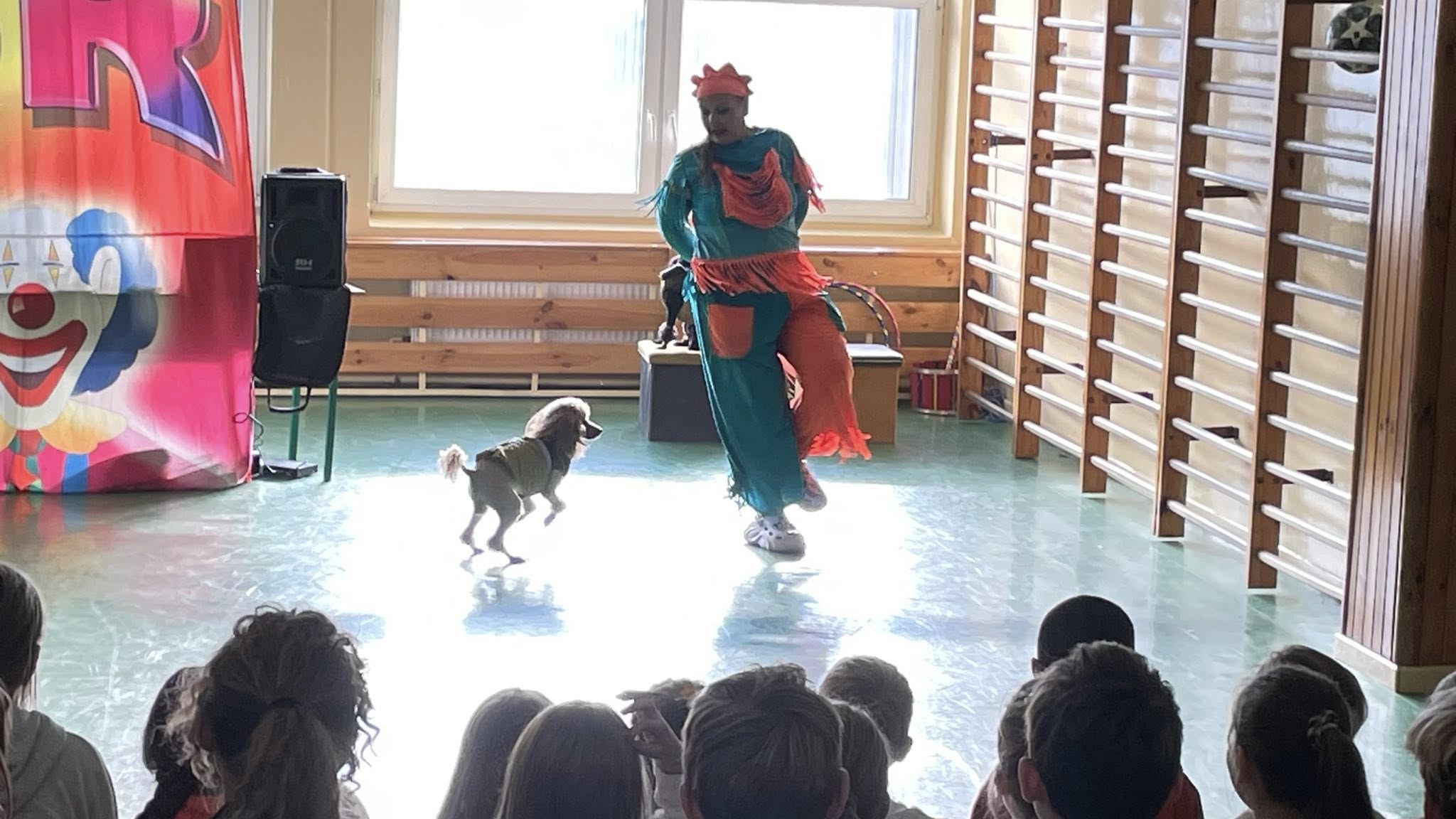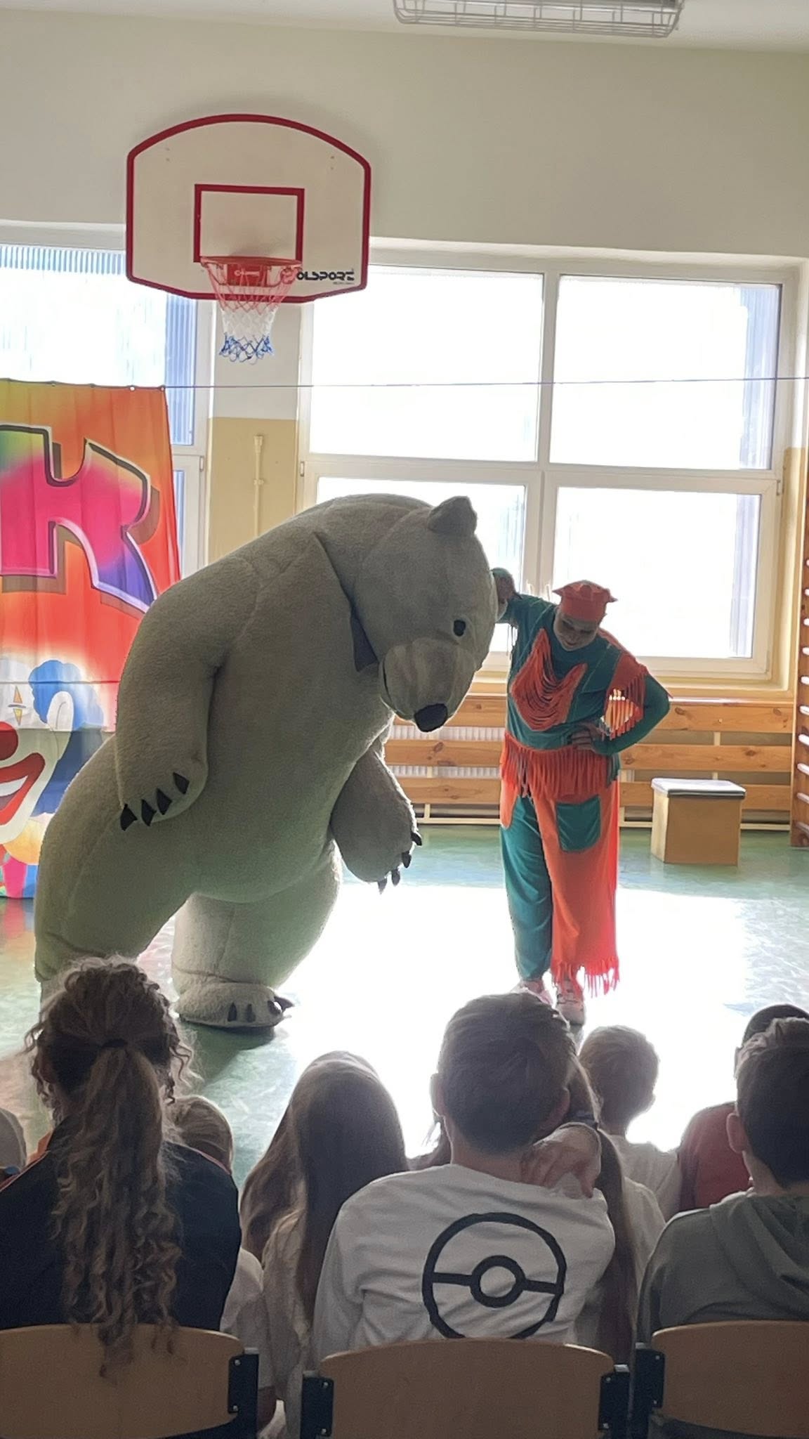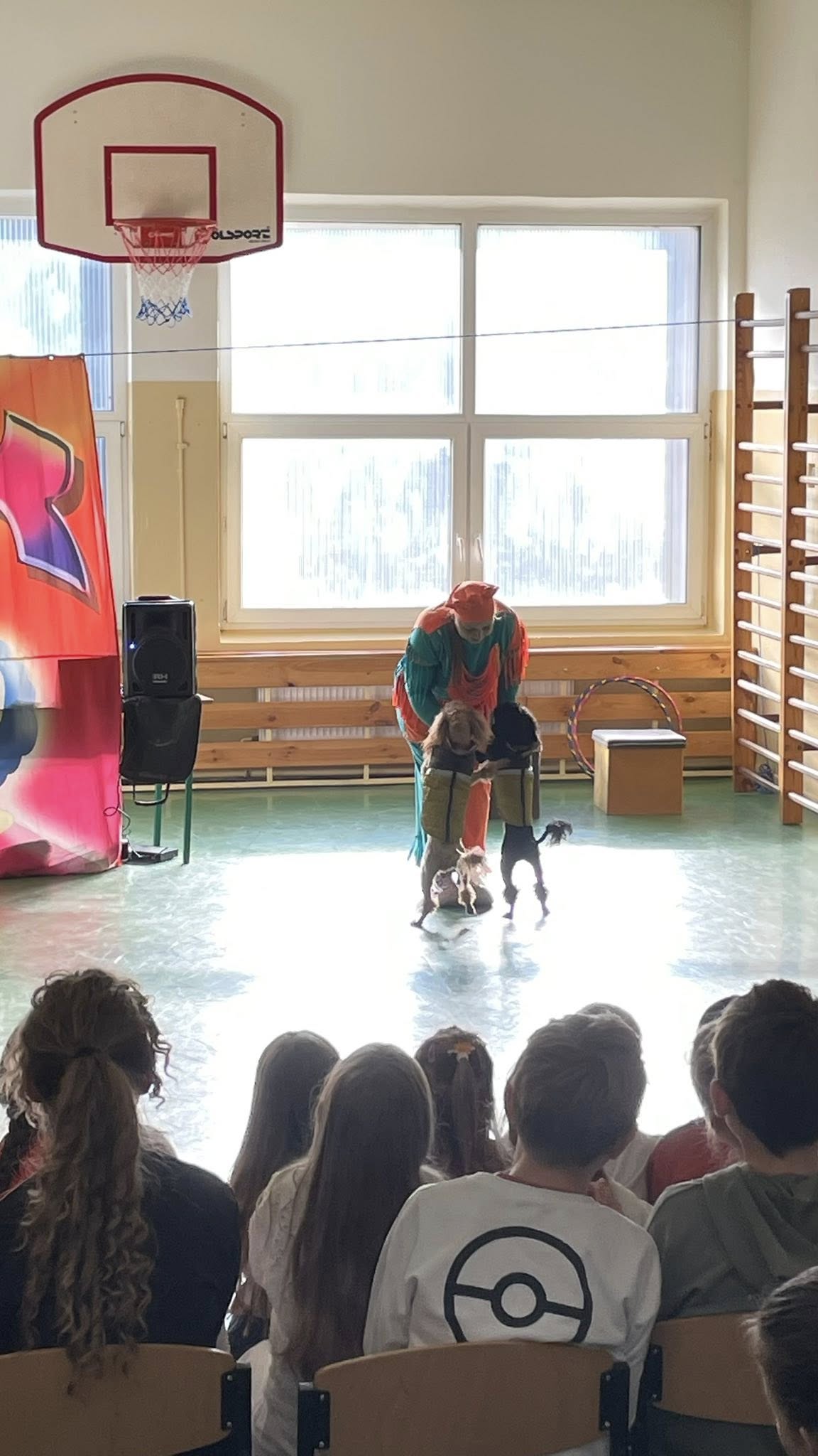 Dzisiaj uczniowie przenieśli się do niezwykłego świata magii i sztuki cyrkowej. Podczas występu mogliśmy podziwiać gołębie, pieski, a nawet… słonia! ![]()