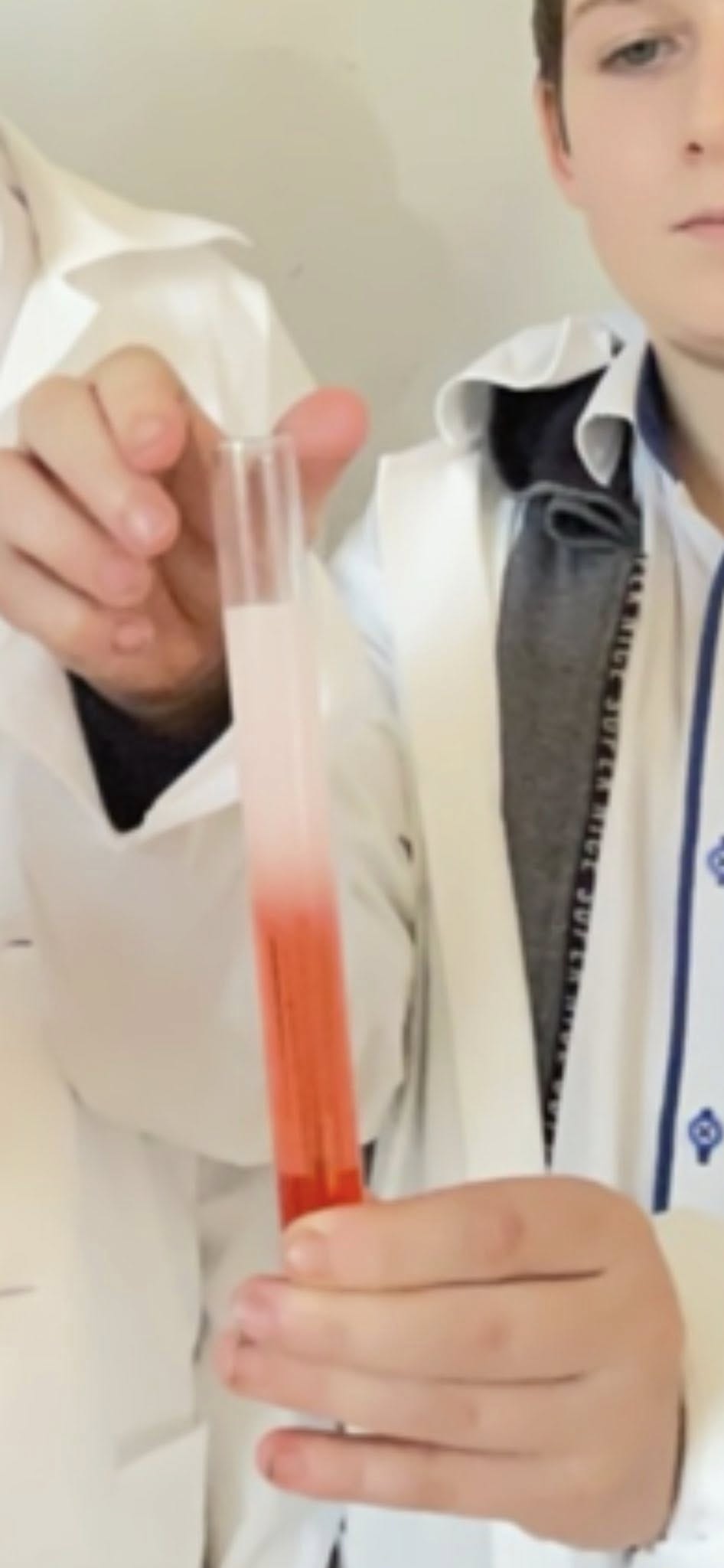 Uczniowie klasy 6 z kółka chemicznego połączyli naukę z patriotyzmem i przygotowali niezwykły eksperyment – flagę biało-czerwoną stworzoną z chemicznych roztworów! ![]()