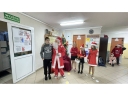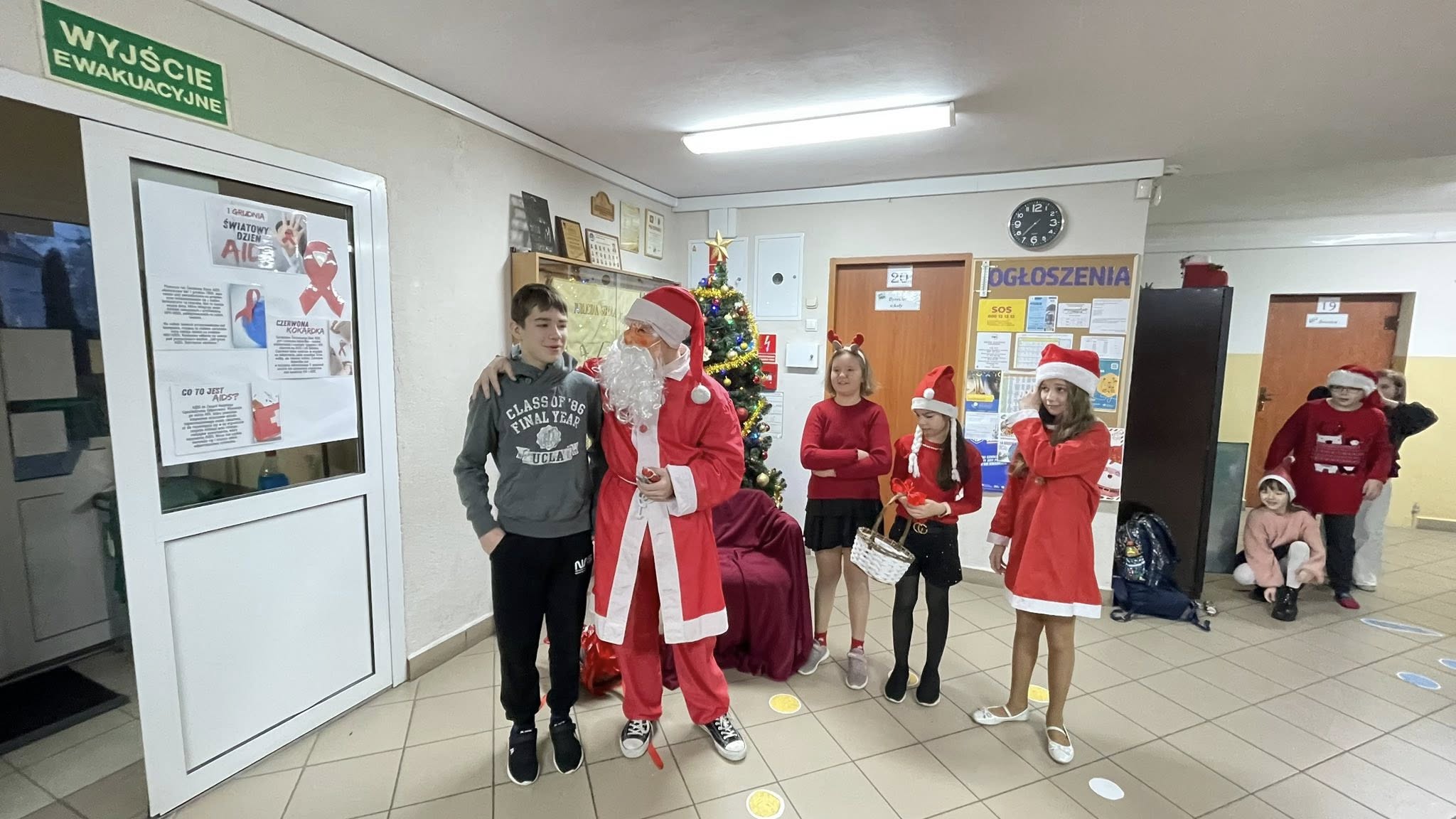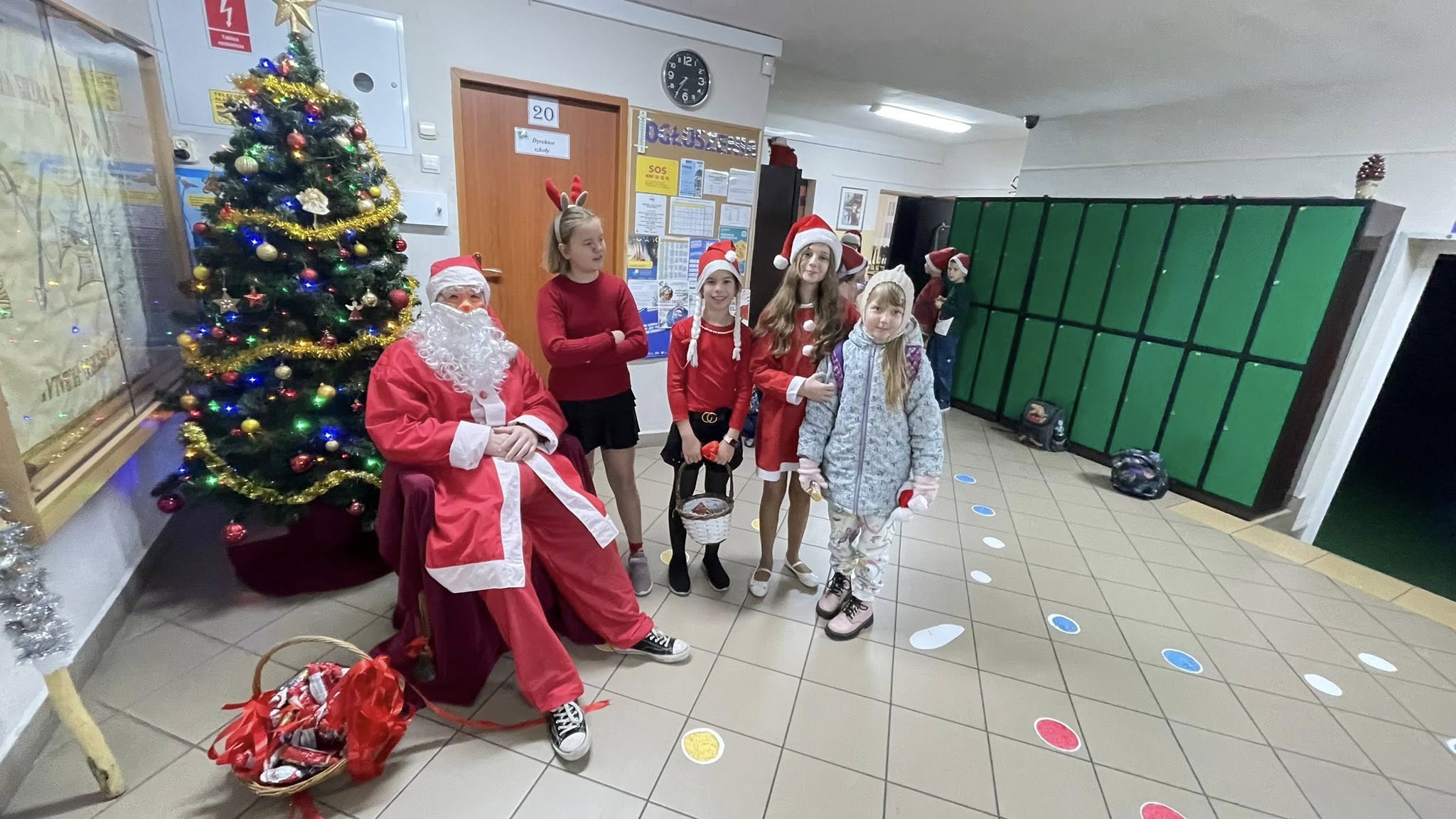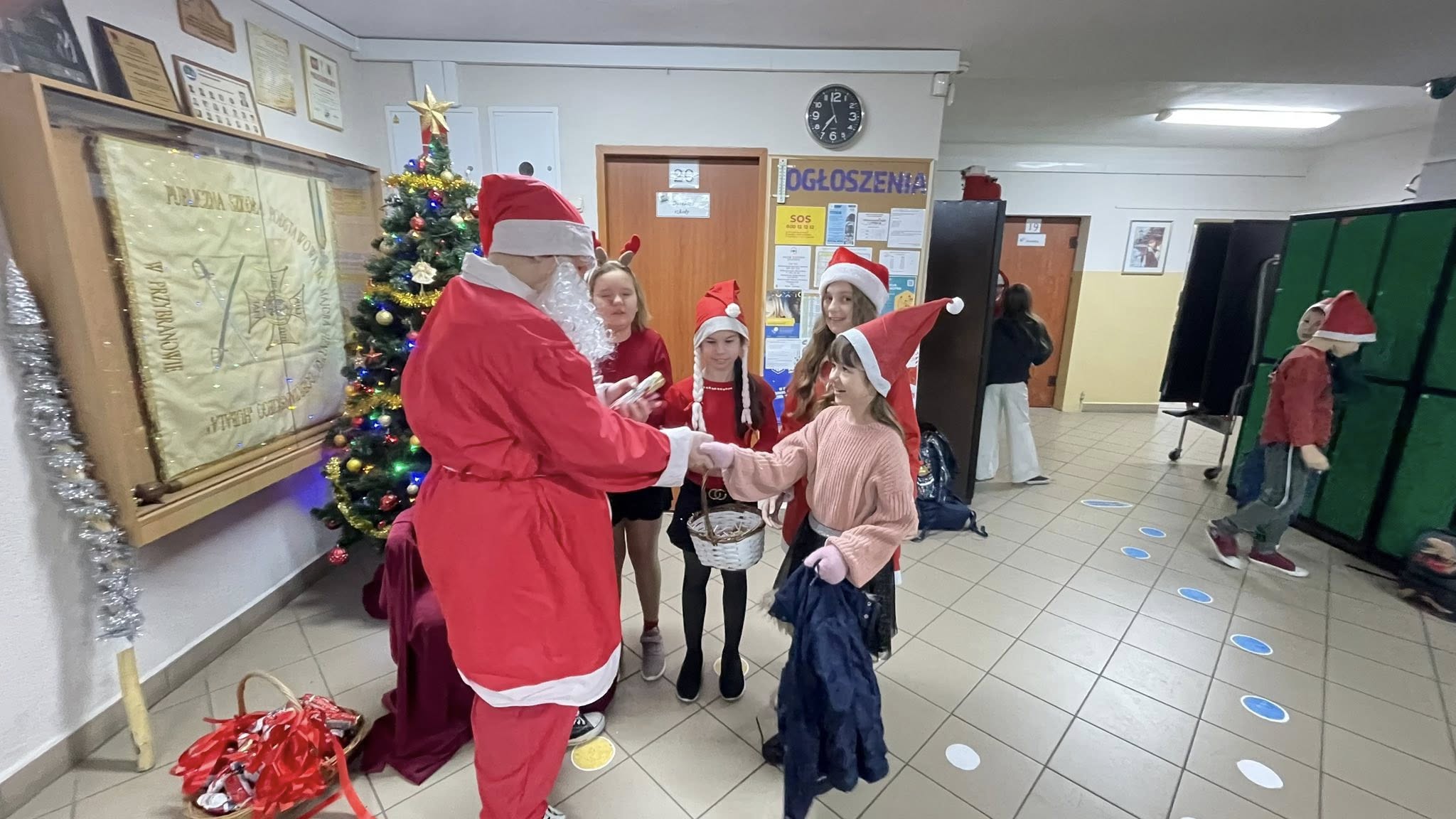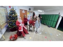 Tuż przy wejściu czekał na dzieci Święty Mikołaj, który każdego witającego się z nim ucznia obdarował słodkim upominkiem.