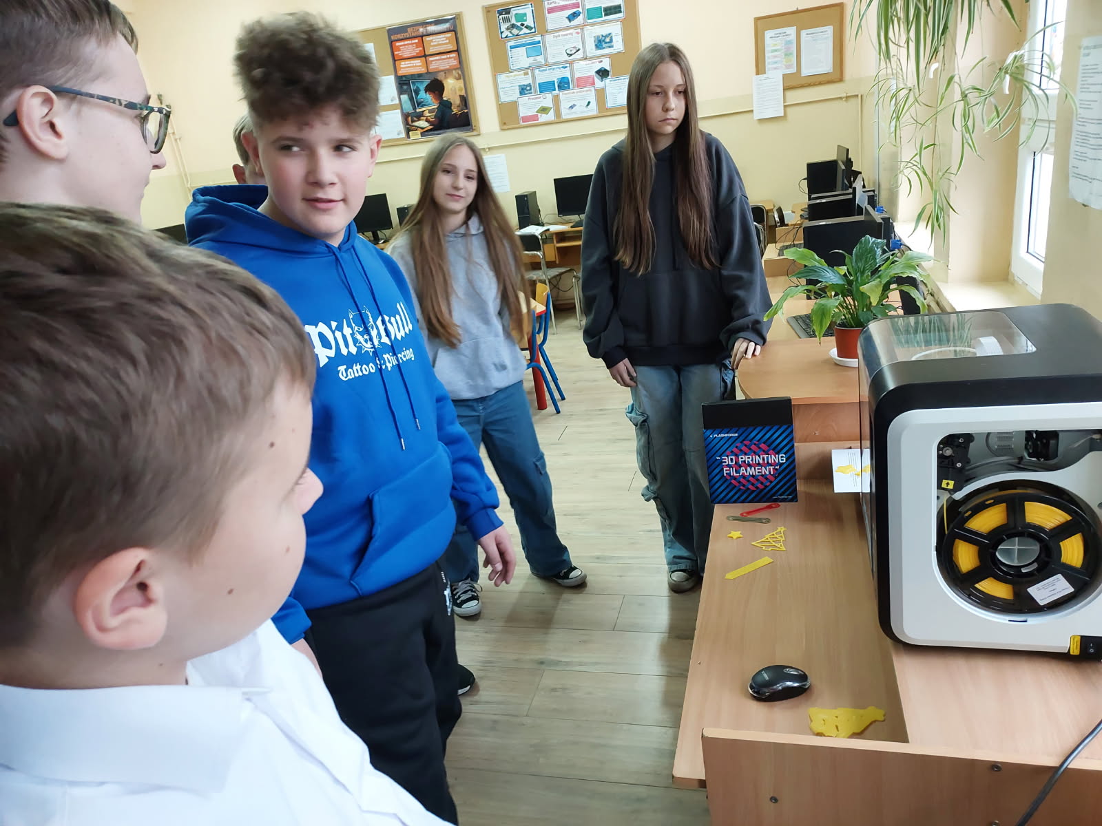 17.11.2025 r. na lekcjach informatyki uczniowie klas IV - VIII dowiedzieli się, czym jest drukarka 3D, starali się odkryć najważniejsze jej elementy, a na podstawie obserwacji próbowali wyjaśnić ich działanie. Podczas zajęć uczniowie wraz z nauczycielem tworzyli pierwsze projekty , m.in. breloczek do kluczy w kształcie gwiazdki. Zajęcia odbyły się w ramach realizacji programu edukacyjno- technologicznego Laboratoria Przyszłości.