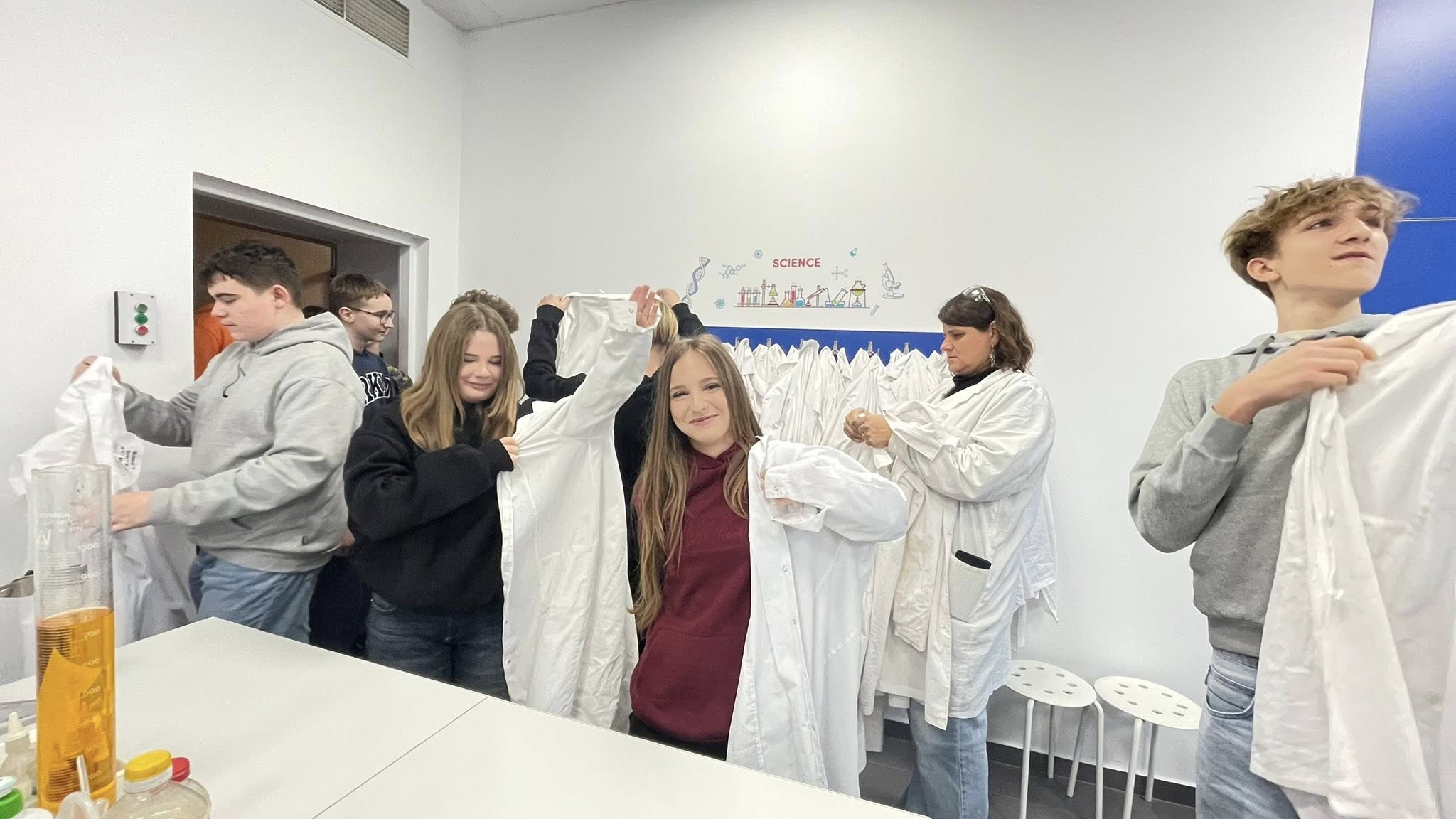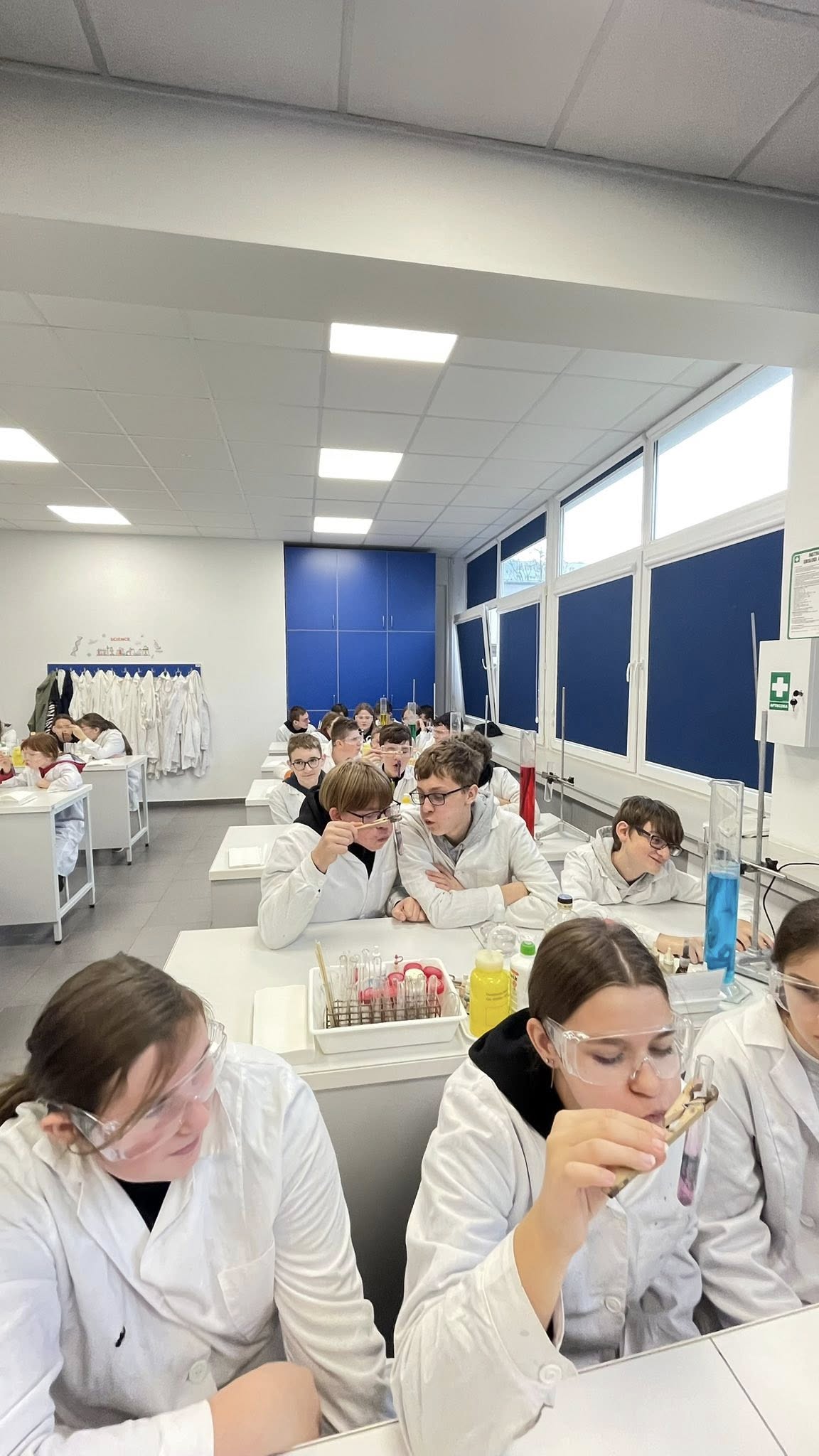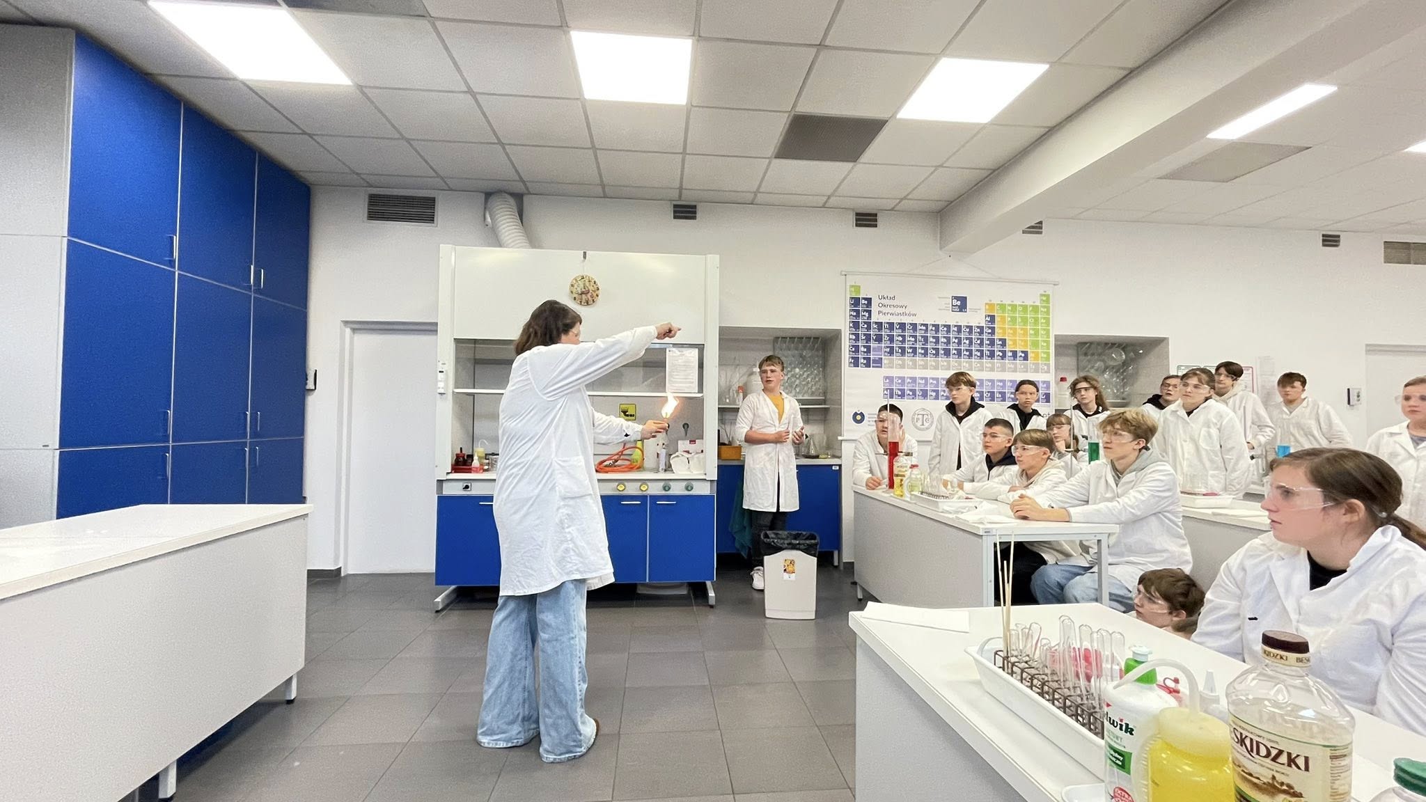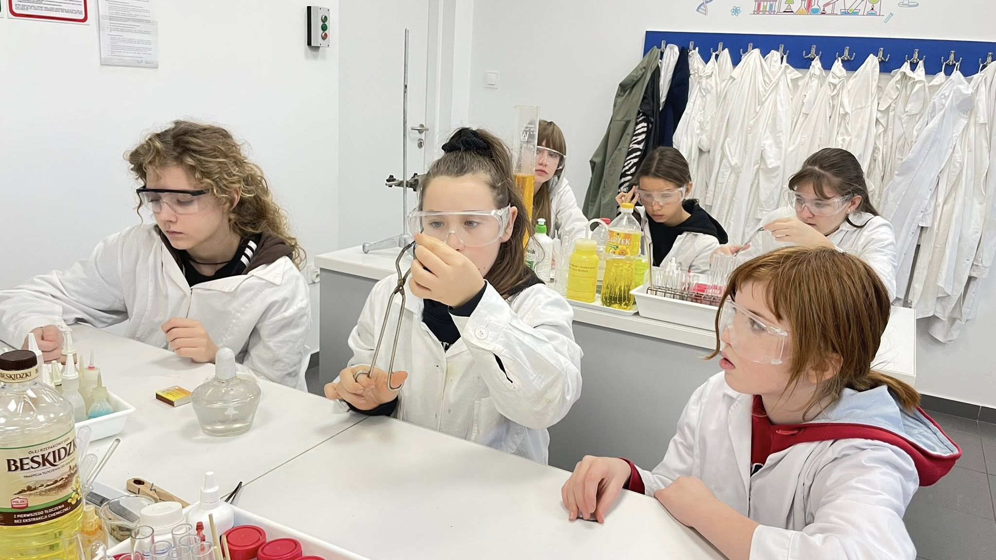 Uczniowie klas 6–8 wybrali się dziś do Toruńskiego Wydziału Chemii UMK, żeby przekonać się, jak wygląda życie prawdziwego chemika. I wiecie co? To nie tylko białe fartuchy i probówki – to czysta magia nauki (czasem dosłownie, bo coś syczało, parowało i zmieniało kolor
