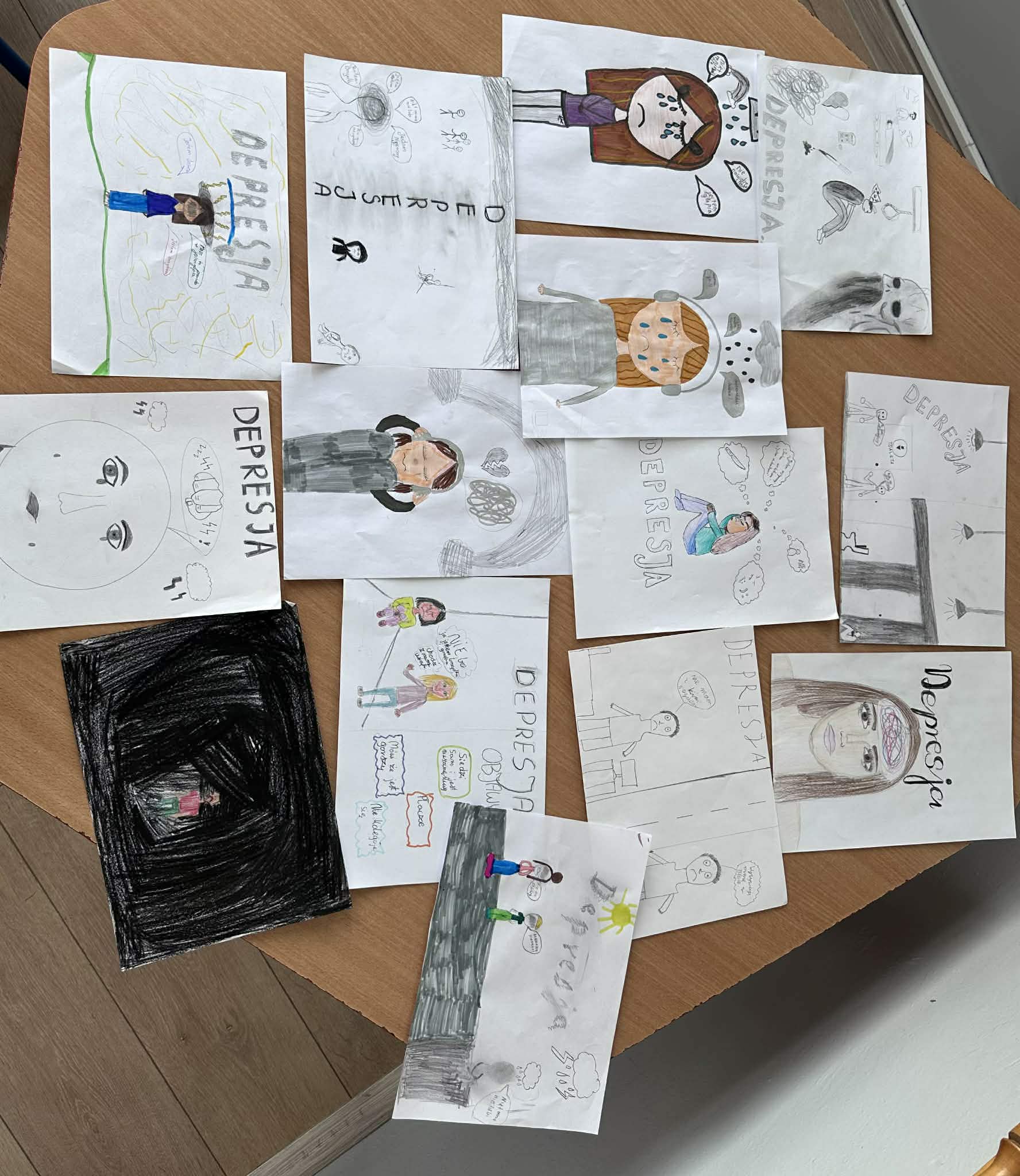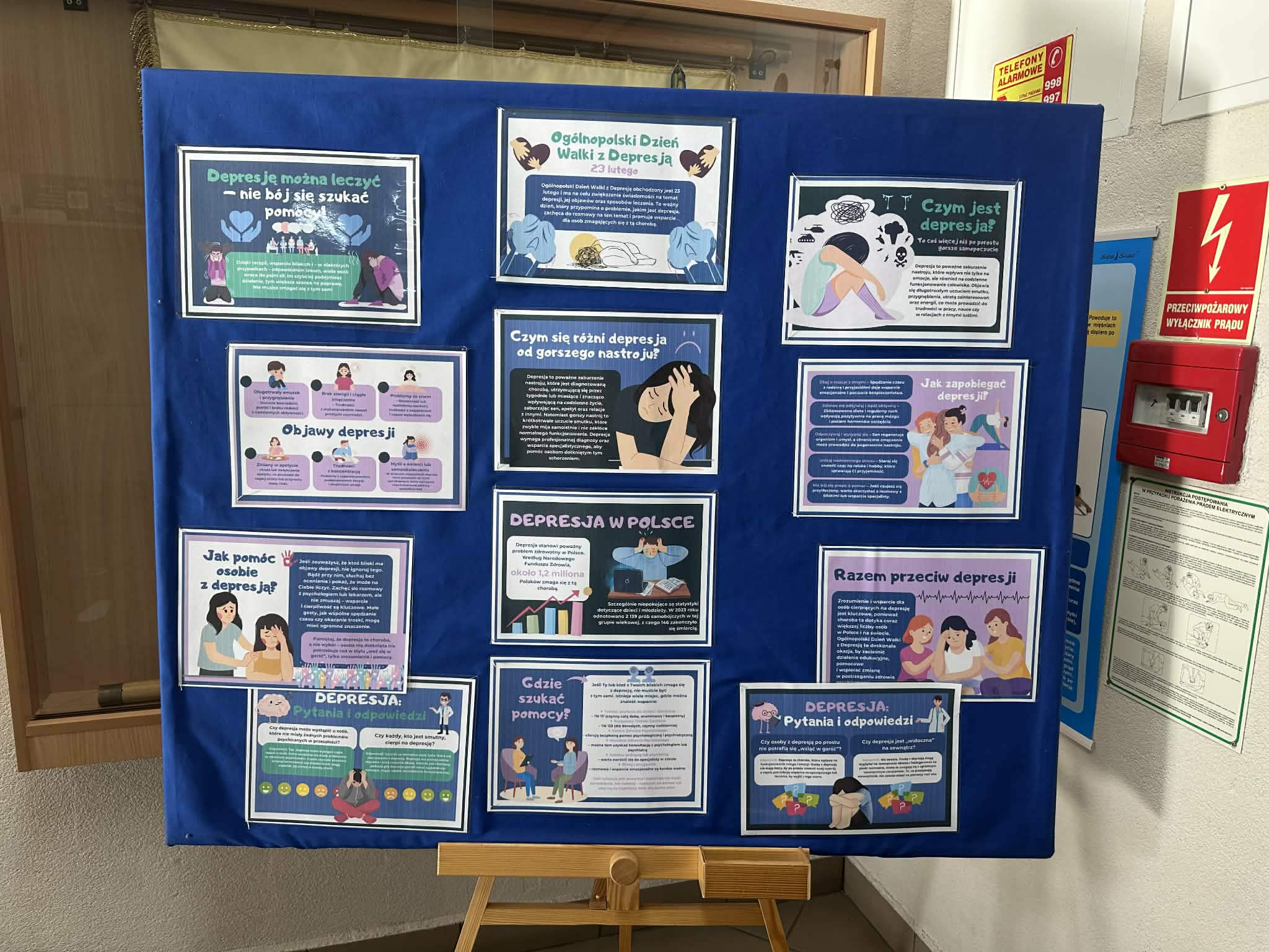 W naszej szkole z okazji Ogólnopolskiego Dnia Walki z Depresją wychowawcy i specjaliści przeprowadzili zajęcia z uczniami na temat depresji i jej objawów, co może wywołać tę chorobę, jakie są mity i stereotypy oraz w jaki sposób reagować, gdy zauważymy, że ktoś potrzebuje pomocy. Omówiono także sposoby radzenia sobie ze stresem. Przypomniano dzieciom i młodzieży, gdzie i do kogo mogą zwrócić się o pomoc będąc w sytuacji trudnej, kryzysowej. Zaprezentowano plansze m.in. z numerem Telefonu Zaufania dla Dzieci i Młodzieży. Uczniowie wykonali również prace plastyczne nawiązujące do omawianego tematu depresji. Na korytarzu szkolnym wyeksponowano także gazetkę tematyczną. Celem tych działań było zwiększenie wśród uczniów świadomości problemu zdrowia psychicznego, budowanie wrażliwości, życzliwości oraz umiejętności dostrzegania sygnałów ostrzegawczych u siebie i innych, a co najważniejsze – właściwego reagowania.