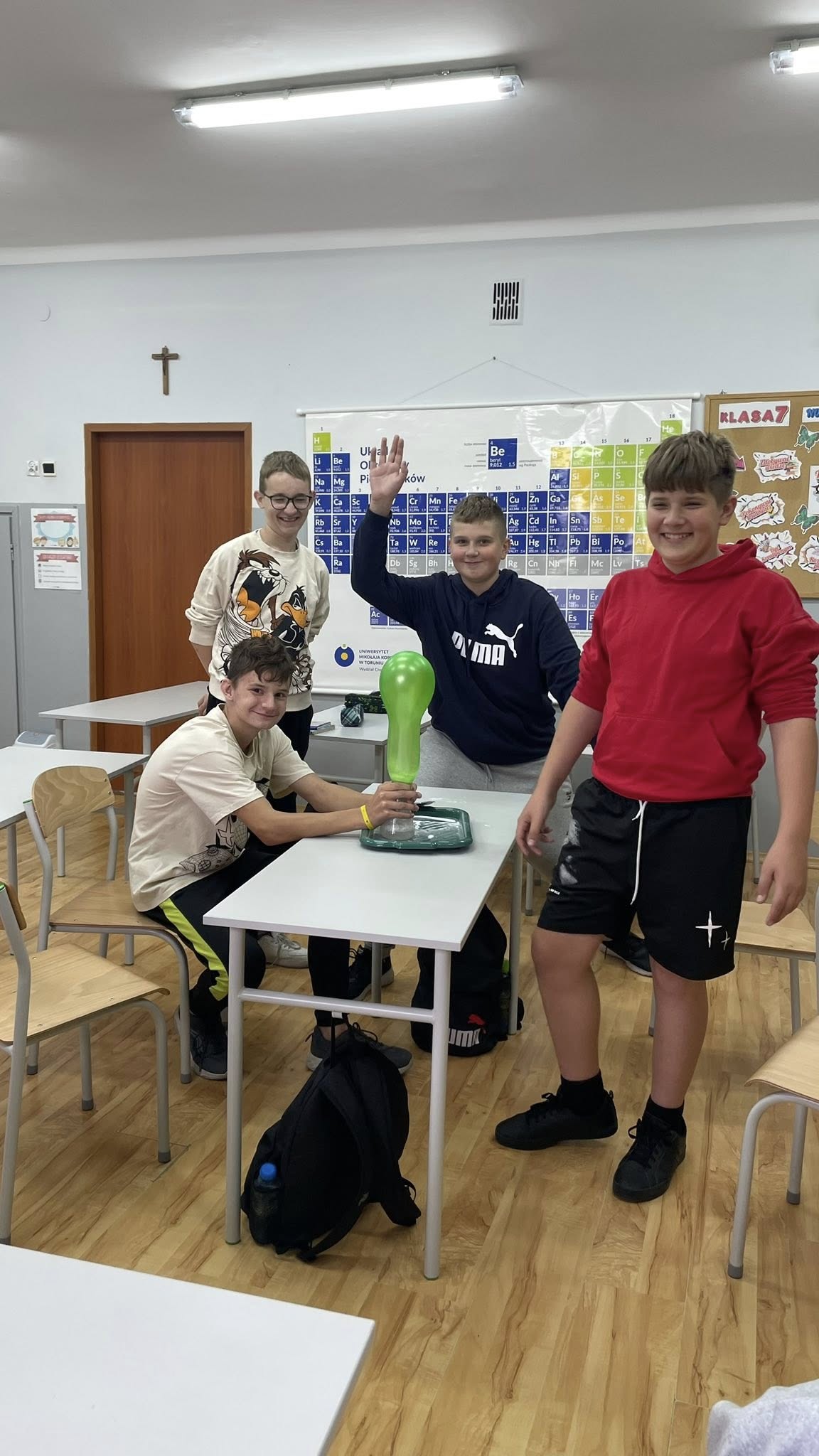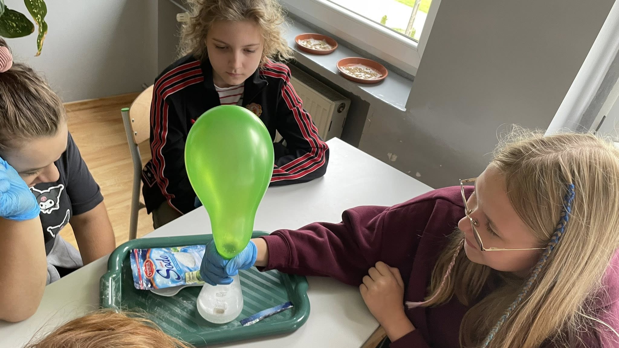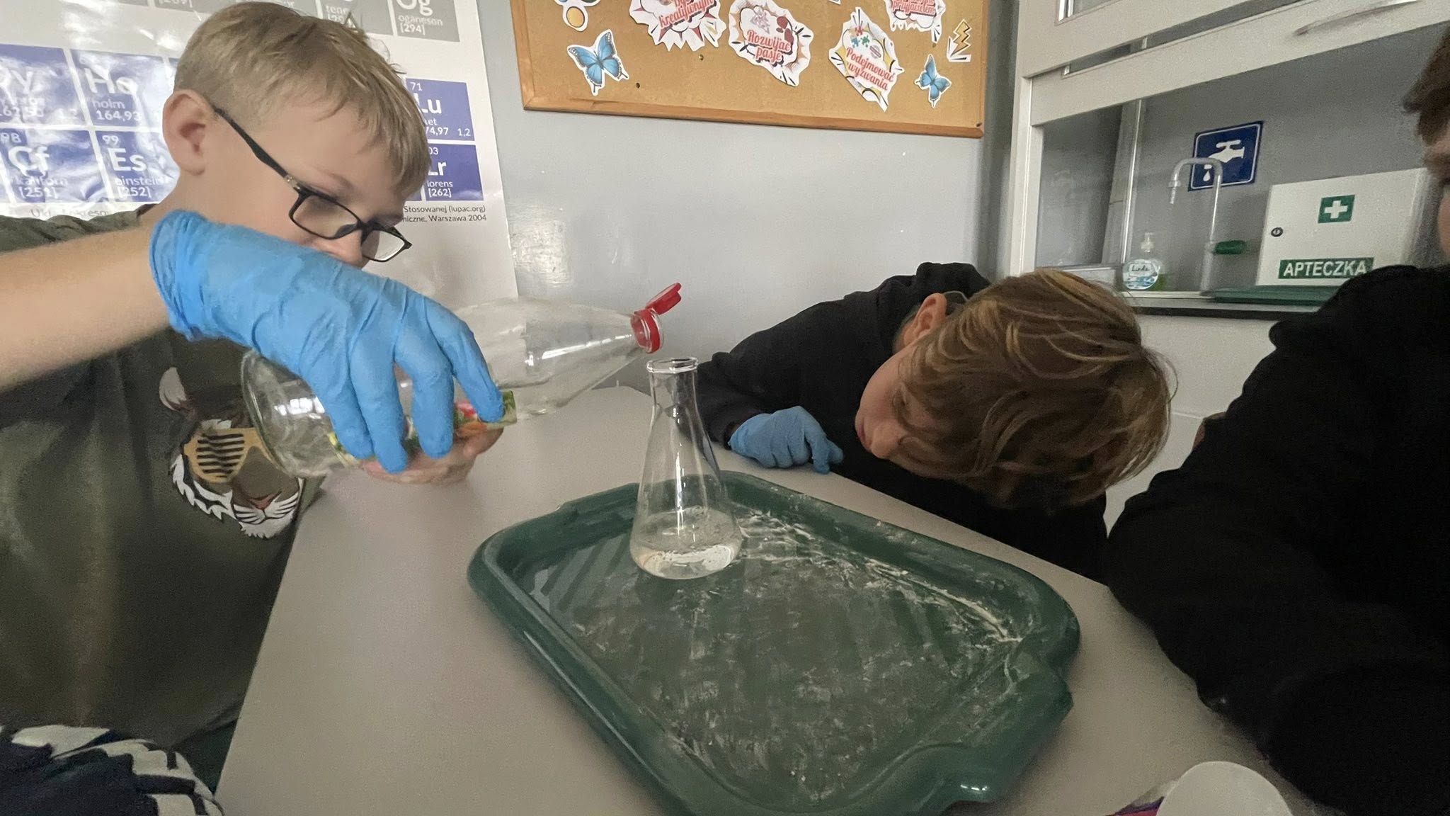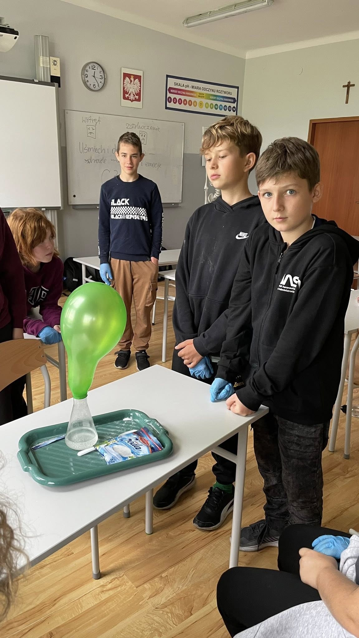 Na kółku przyrodniczym uczniowie klasy 6 i 7 odkryli, że soda i ocet to duet lepszy niż Batman i Robin ![]()