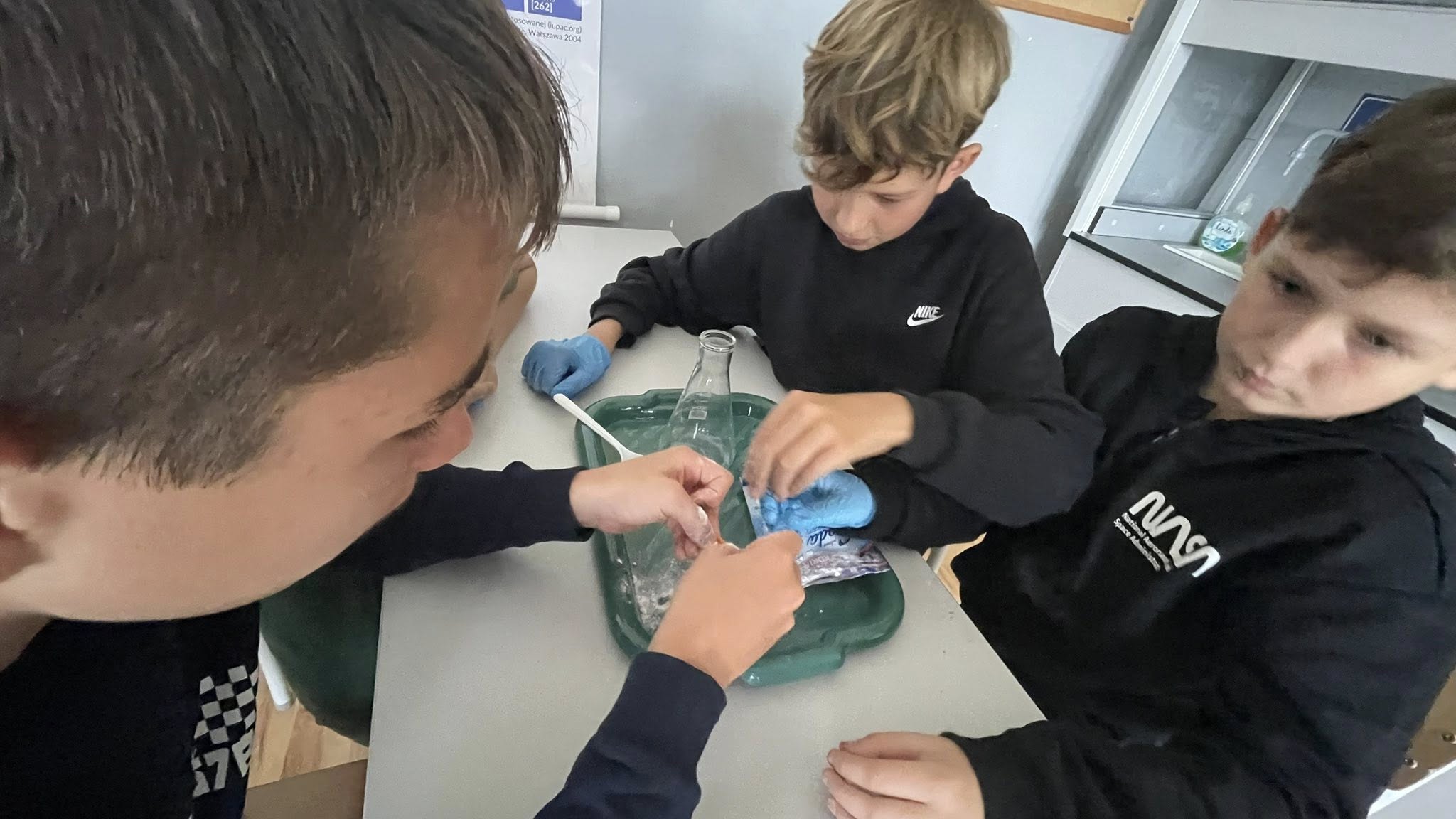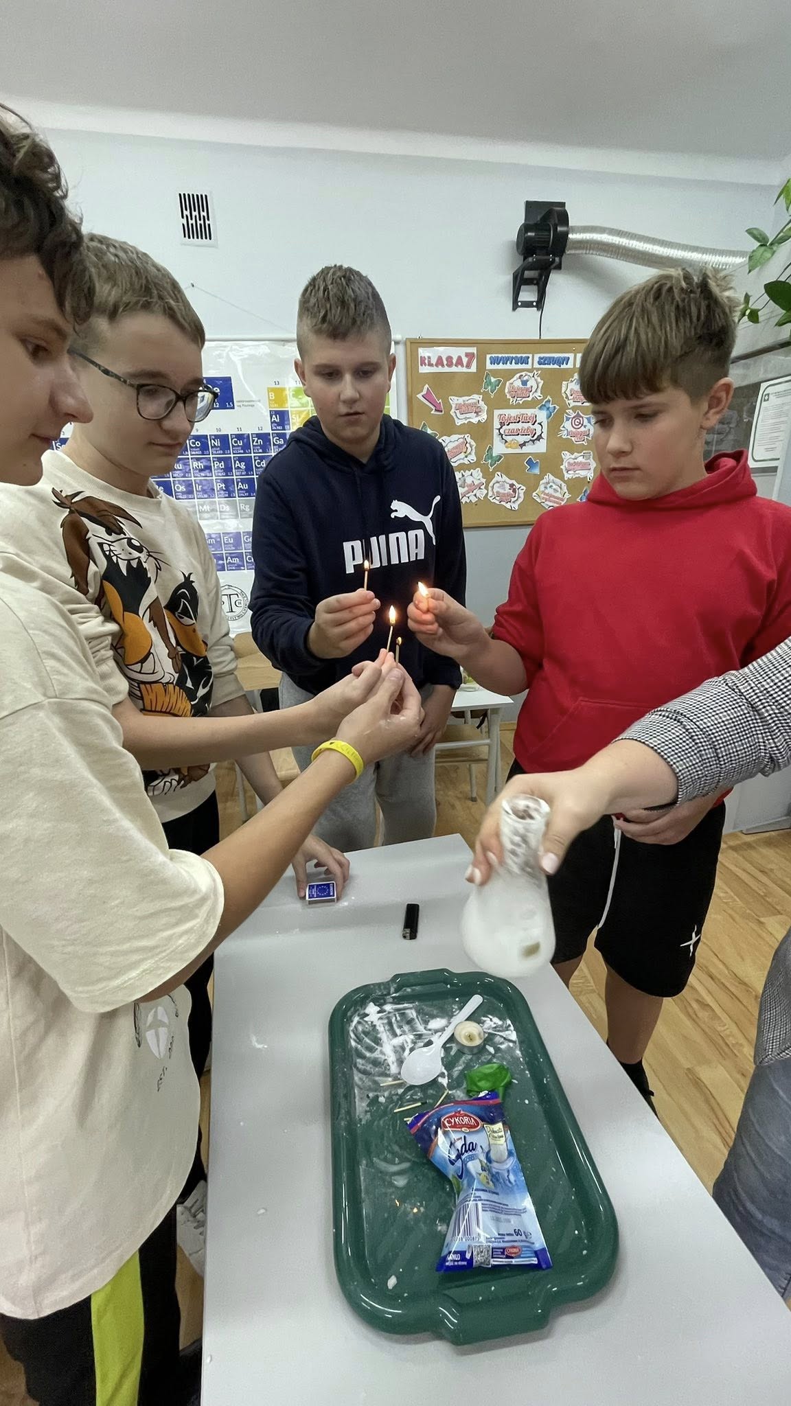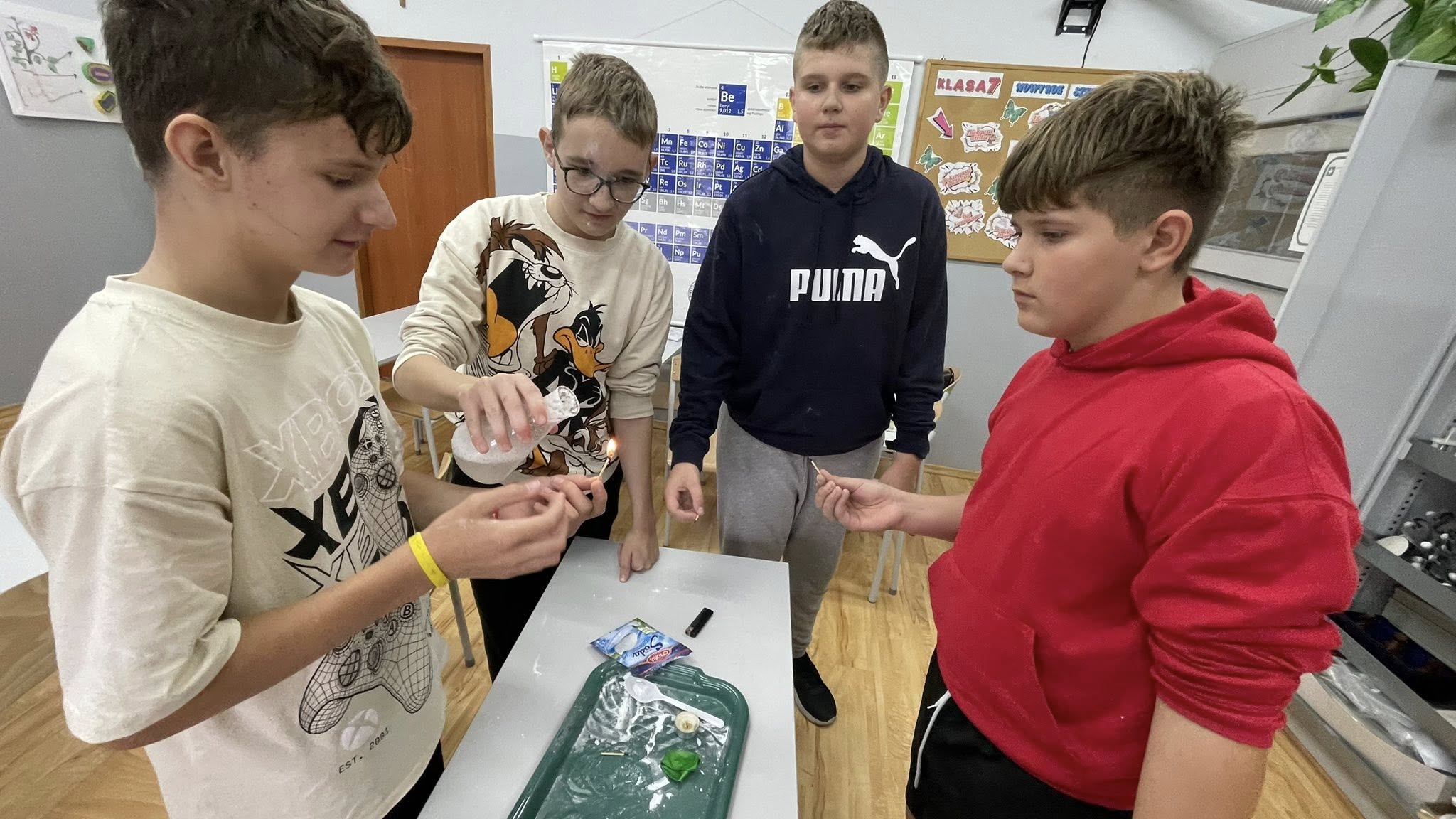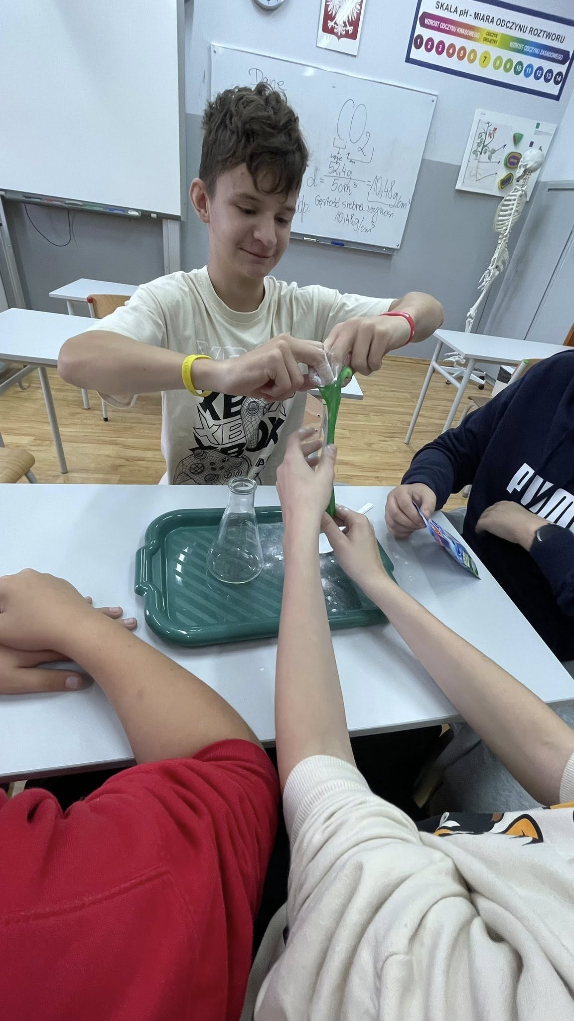 Na kółku przyrodniczym uczniowie klasy 6 i 7 odkryli, że soda i ocet to duet lepszy niż Batman i Robin ![]()