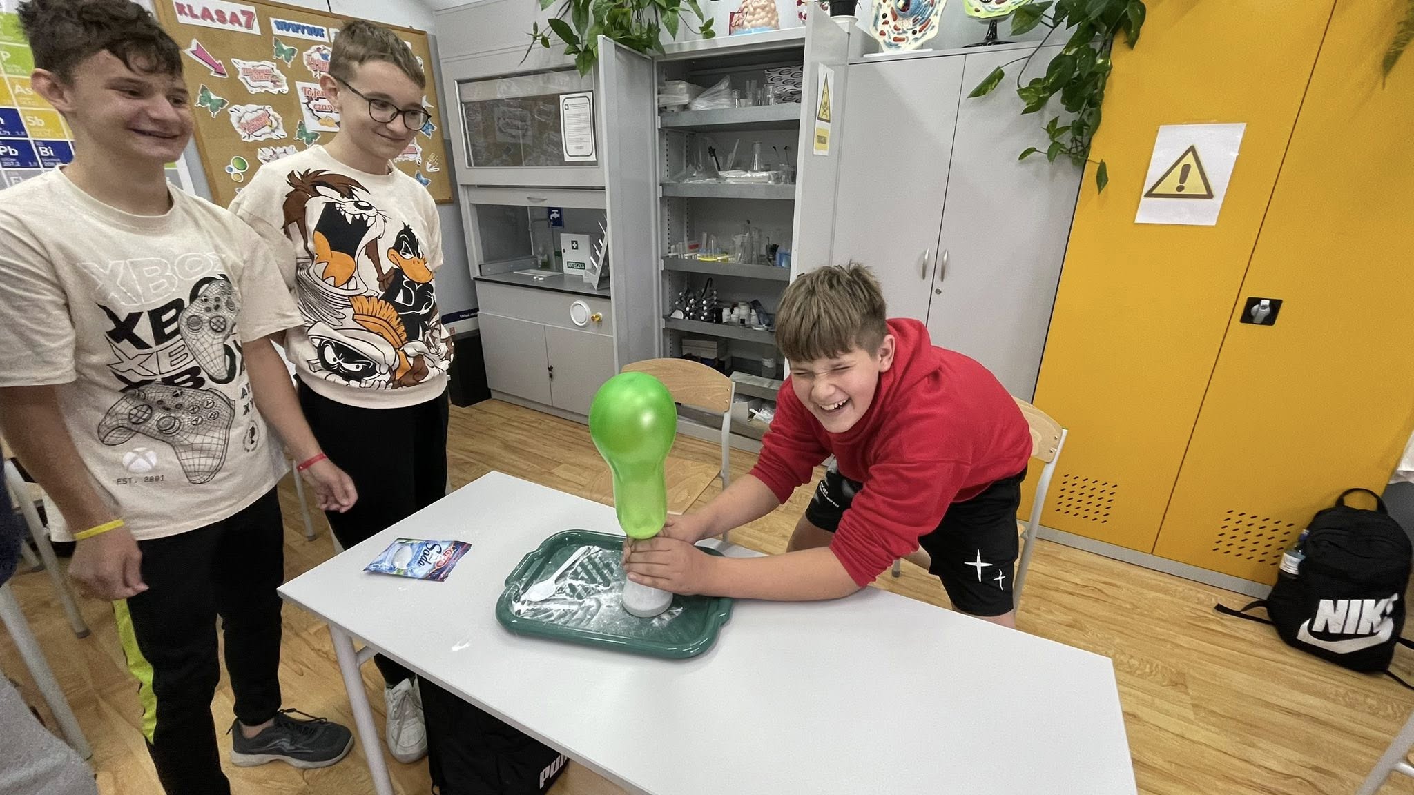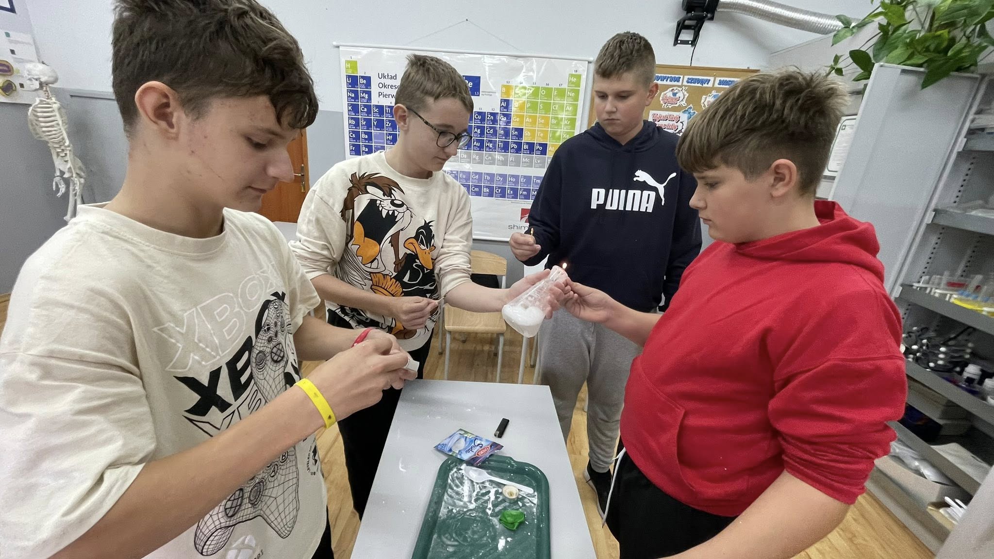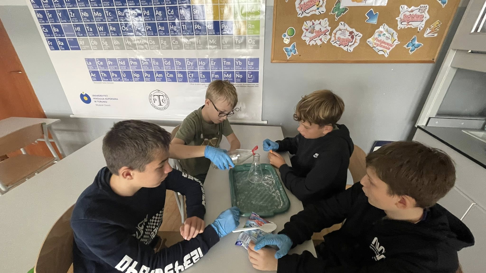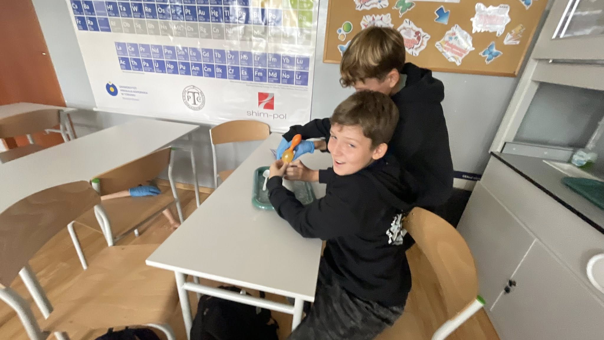 Na kółku przyrodniczym uczniowie klasy 6 i 7 odkryli, że soda i ocet to duet lepszy niż Batman i Robin ![]()