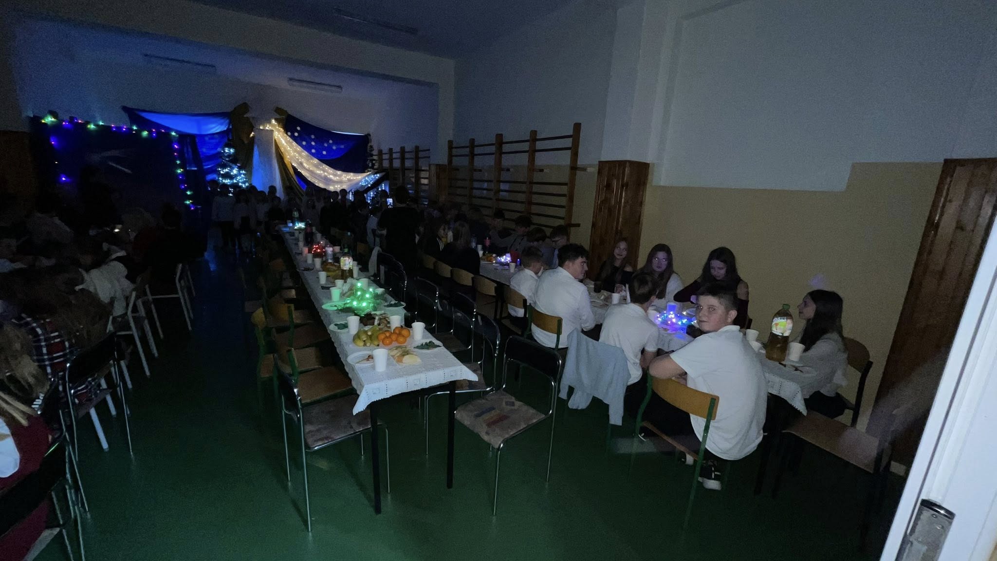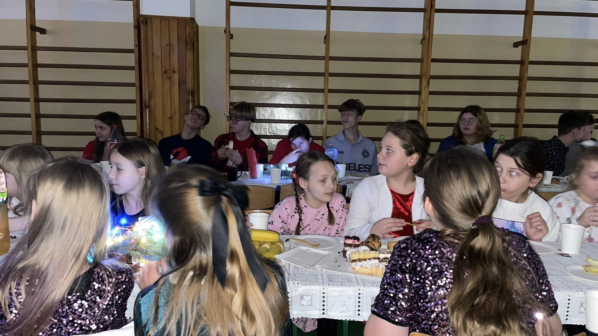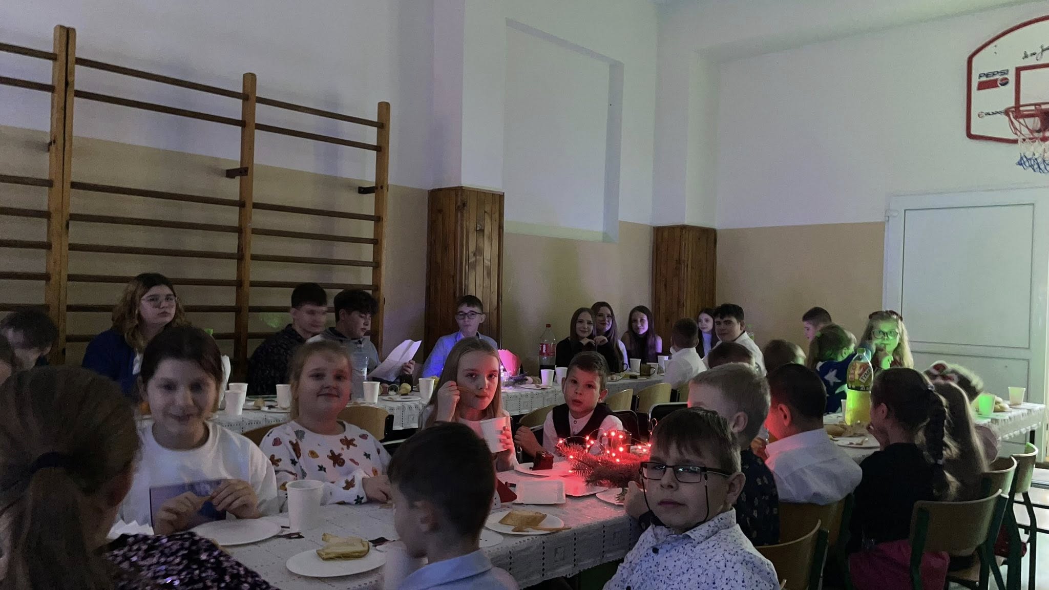 Dzisiejszy dzień na długo pozostanie w naszej pamięci. Cała społeczność szkolna spotkała się na wspólnej wigilii szkolnej na sali gimnastycznej, która na ten czas zamieniła się w miejsce pełne ciepła, radości i świątecznej magii.