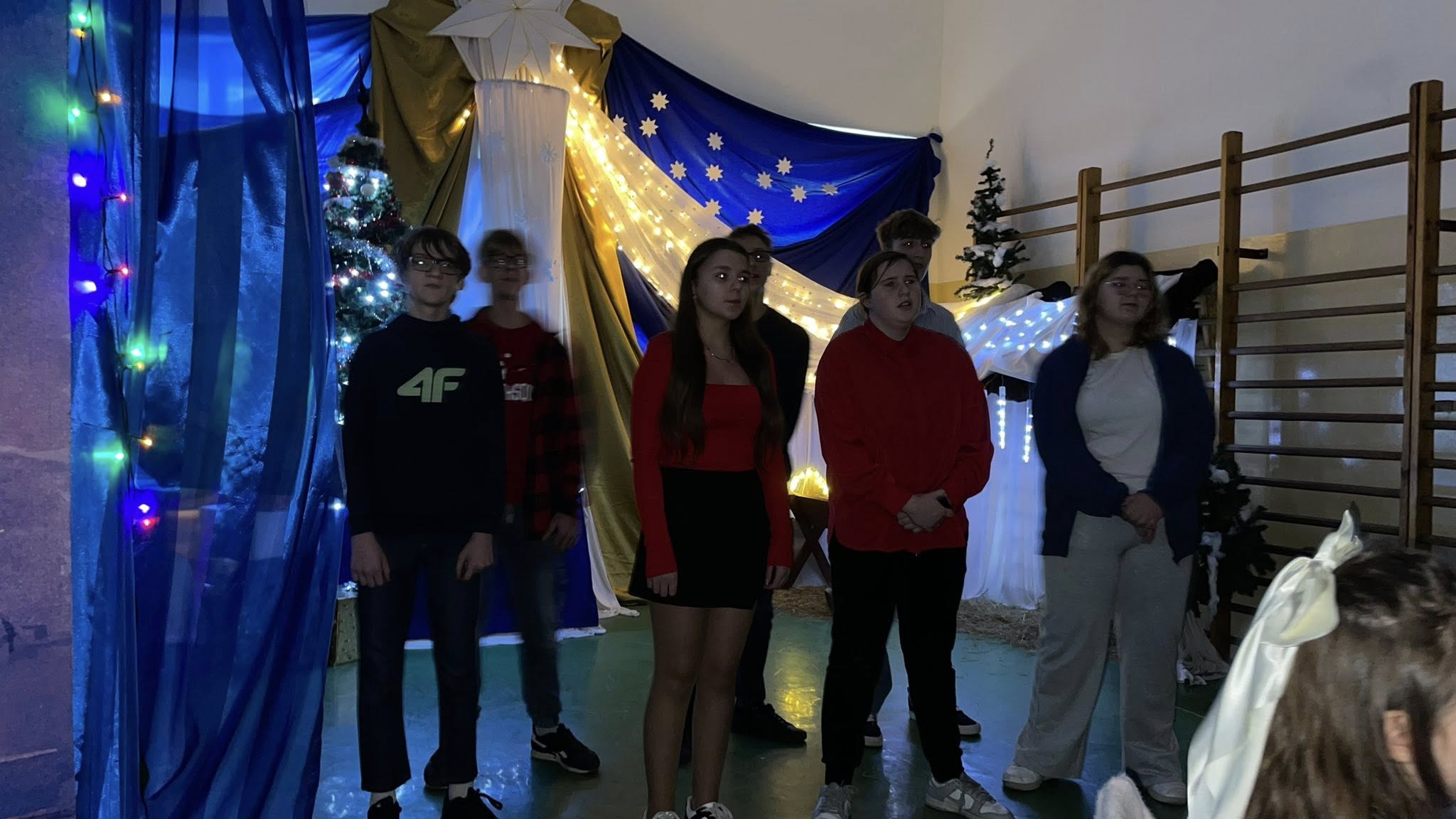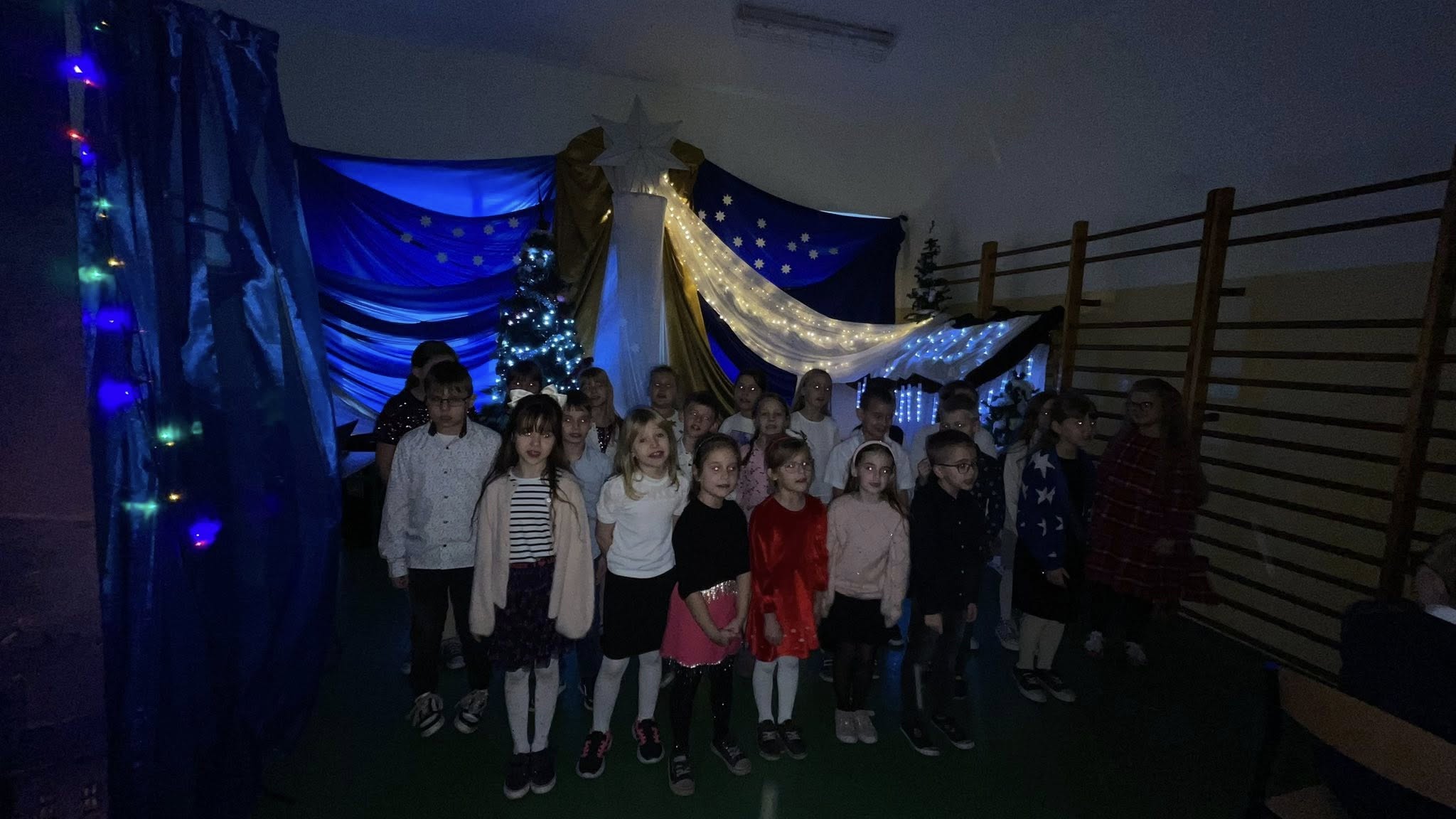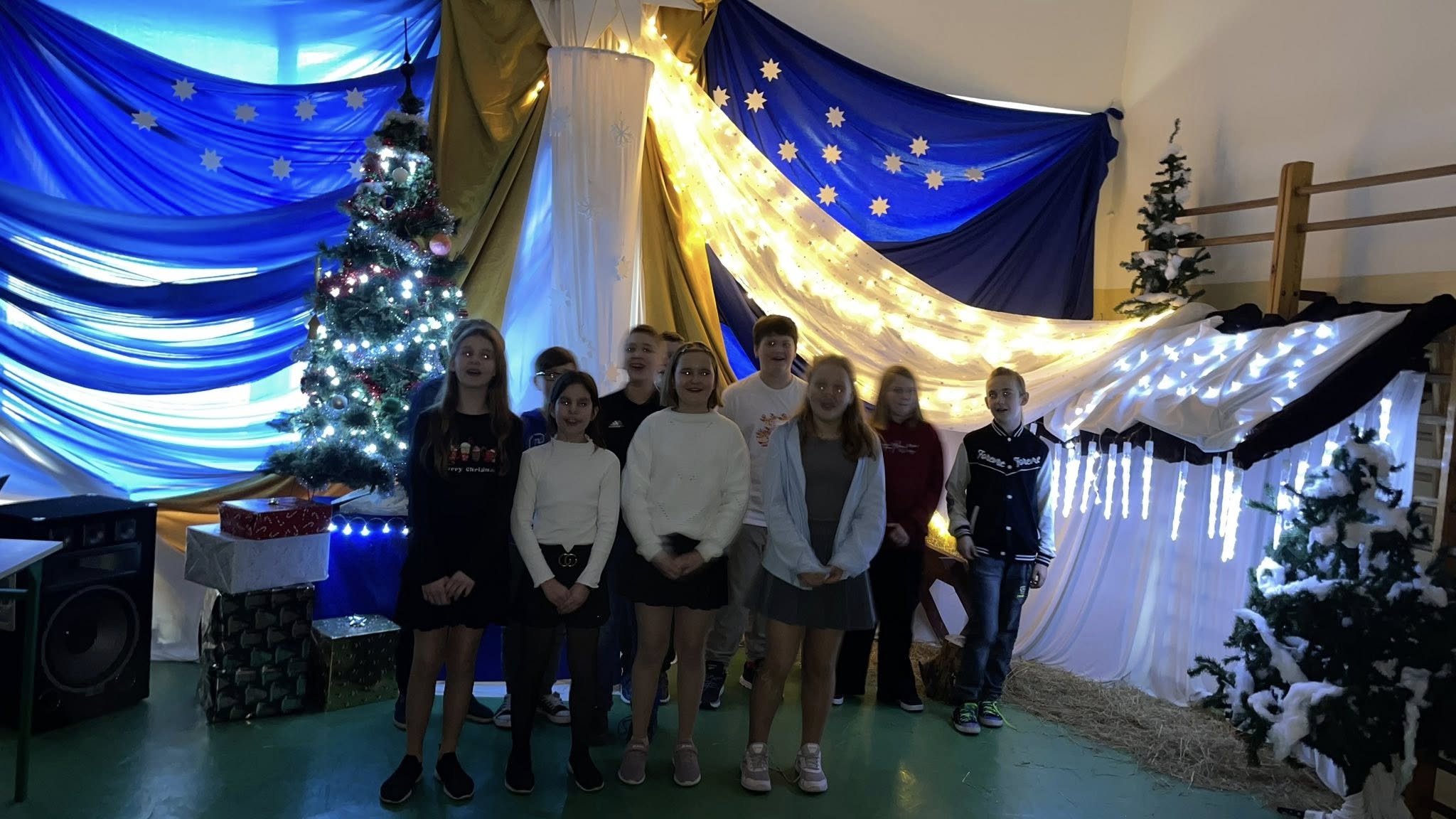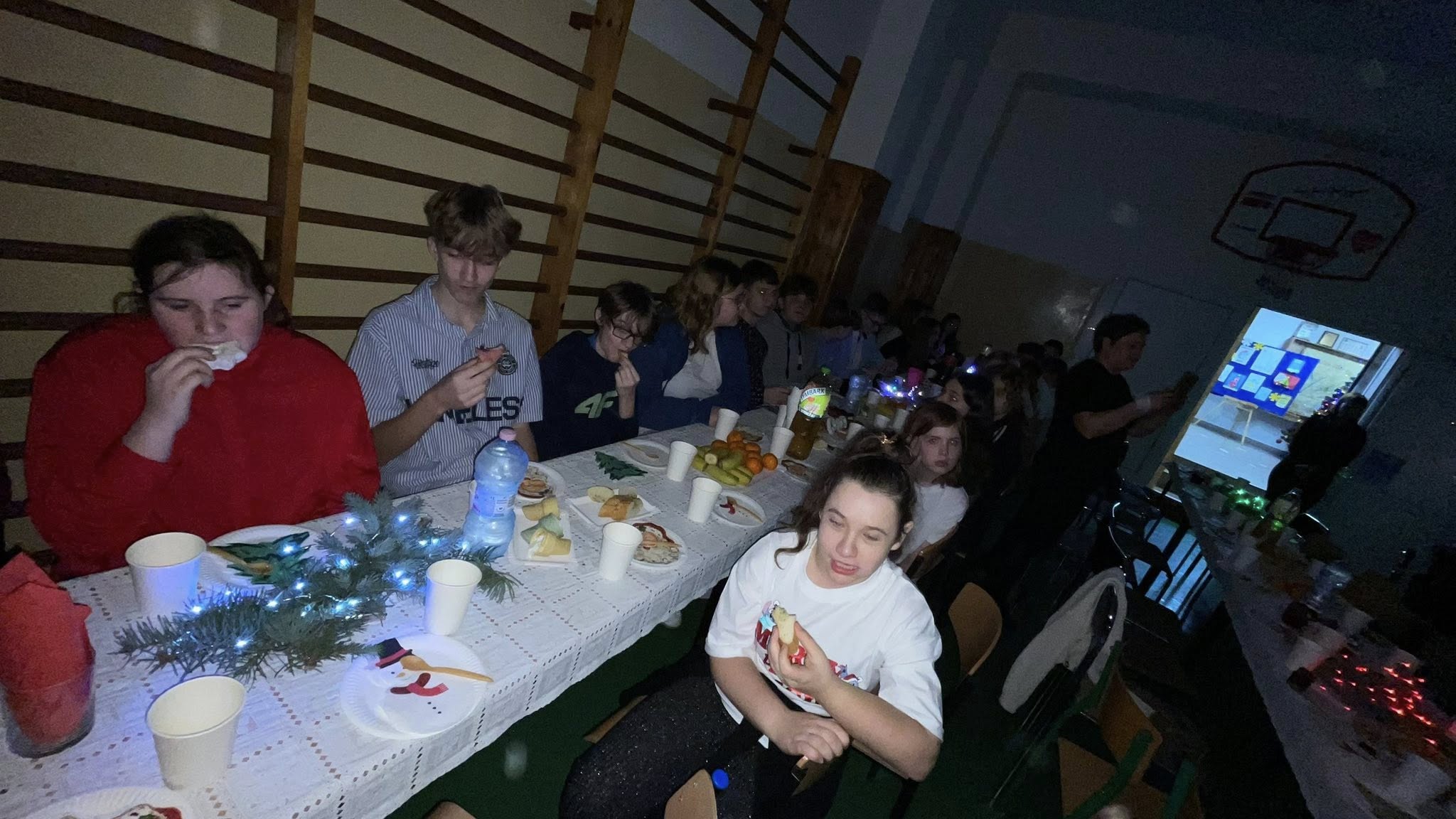 Dzisiejszy dzień na długo pozostanie w naszej pamięci. Cała społeczność szkolna spotkała się na wspólnej wigilii szkolnej na sali gimnastycznej, która na ten czas zamieniła się w miejsce pełne ciepła, radości i świątecznej magii.