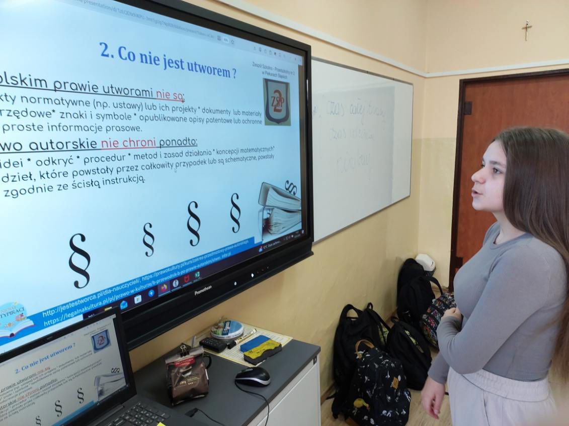 W tym roku szkolnym nauczyciele mieli za zadanie przeprowadzić w swoich szkołach lekcje poświęcone prawu autorskiemu i własności intelektualnej, wykorzystując materiały edukacyjne wypracowane przez uczestników poprzednich edycji ogólnopolskiej akcji. Koordynatorzy szkolni p. Paweł Stachurski i p. Cecylia Bącalska wzięli też udział w seminarium online dotyczącym zagadnień z zakresu prawa autorskiego.
